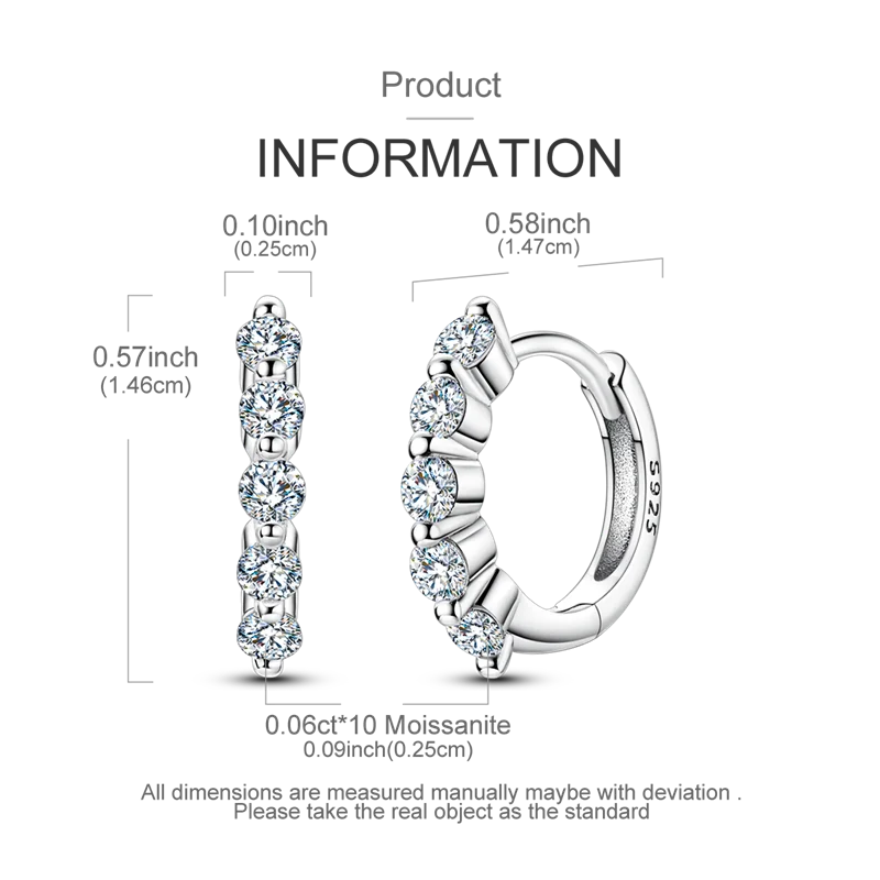 Enjoy the timeless elegance of these 925 sterling silver hoop earrings, delicately crafted with a smooth, rounded design shaped like animals. Adorned with ten sparkling GDTC-certified moissanite stones per earring, each weighing 0.06 carats for a total of 0.60 carats, these earrings radiate brilliance and luxury. Weighing approximately 1 gram and designed specifically for women, they are perfect for weddings, engagements, or elevating any special occasion. The earrings feature a secure clasp with a seamless interior, combining simplicity and sophistication to create a versatile accessory that enhances your natural beauty with a dazzling sparkle.