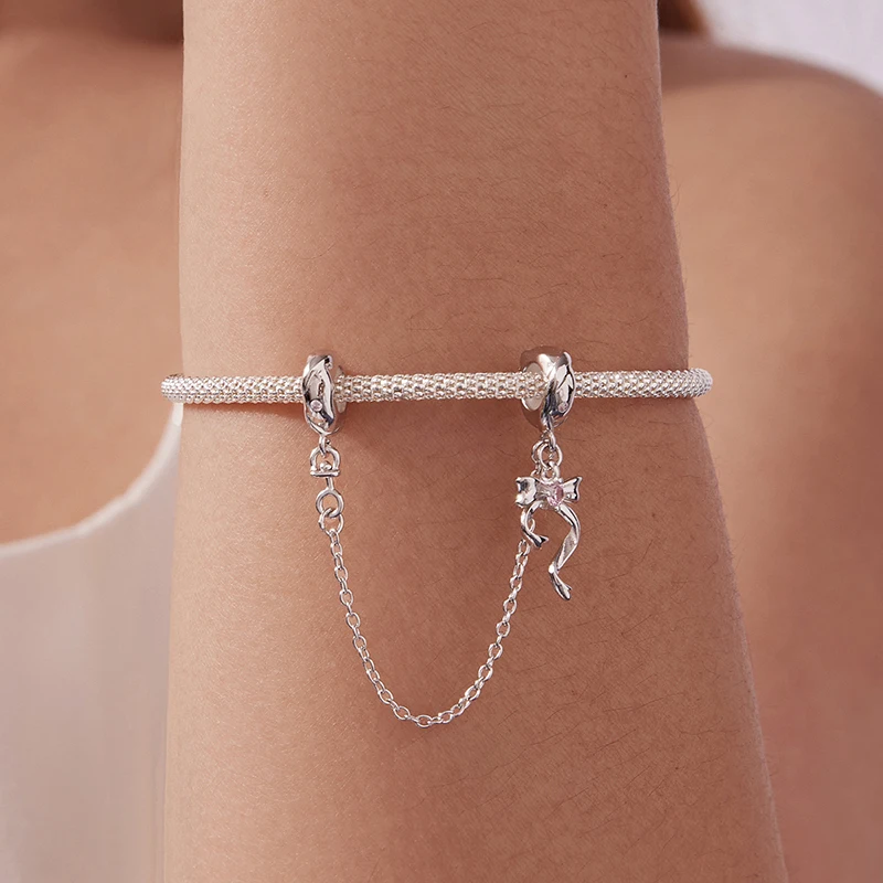 Discover the charm of this beautifully crafted safety chain designed for jewelry enthusiasts who appreciate both style and detail. Made from genuine 925 sterling silver, it weighs just 2.2 grams, making it light yet durable. Adorned with sparkling zircon stones and crystals, the charm features intricate motifs including a charming pink bow, a delicate heart, a crisp snowflake, and a cute turtle. Its versatile design complements casual or sporty styles, adding a playful yet sophisticated touch to your bracelet or jewelry collection. The charm’s high-quality craftsmanship ensures durability and elegance, making it a perfect gift or personal accessory. Its 0.45 cm hole aperture makes it compatible with most jewelry pieces, supporting customization and creativity in your DIY projects.