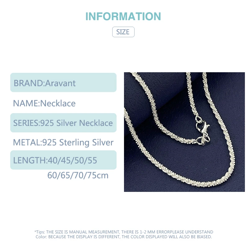 Experience elegance and sophistication with this this sparkling silver necklace from Aravant. Crafted from genuine 925 sterling silver, it features a delicate chain adorned with a continuous line of tiny, shimmering stones that catch the light beautifully. Suitable for women and girls, its minimalist yet luxurious design makes it perfect for both everyday wear and special occasions like parties, weddings, or anniversaries. Available in multiple lengths from 40cm to 75cm, you can choose the perfect fit to layer or wear alone. The hypoallergenic finish ensures comfort for sensitive skin while maintaining a refined and modern aesthetic. Elevate your style with this jewelry piece that combines brilliance, versatility, and quality.