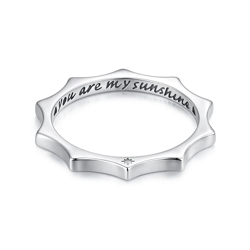 Enhance your jewelry collection with this exquisite sterling silver gear ring, crafted from high-quality 925 sterling silver. Its unique sun-shaped motif features a scalloped, gear-like outer edge that exudes modern sophistication. The polished surface reflects light beautifully, emphasizing the elegant craftsmanship and trendy geometric style. The engraved “you are my sunshine” message inside adds a heartfelt touch, making it perfect for expressing love and appreciation. Lightweight at only 1.6 grams, this charming piece offers comfortable wear while making a bold fashion statement. Whether for a special occasion or everyday wear, this versatile ring captures both style and sentiment effortlessly, elevating your look and personal connection.