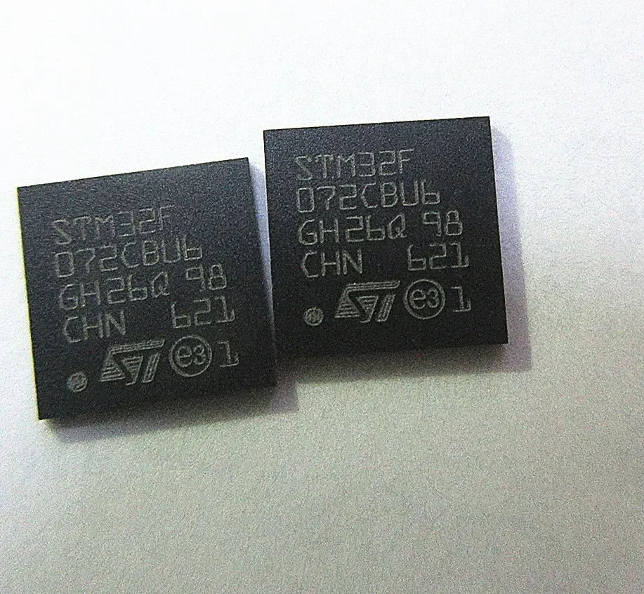 Experience the sleek, modern design of this this set of original STM32F microcontroller chips. Each chip features a minimalist, square shape with a smooth, matte black finish that exudes sophistication. The crisp white printed text details the model numbers and technical specifications, providing precise identification and a professional aesthetic. Small circular logos add subtle visual interest without clutter, emphasizing a clean, industrial look. These chips are perfect for electronics enthusiasts and professionals seeking reliable, high-performance components. Their understated style and meticulous manufacturing ensure seamless integration into any project, whether for prototypes or final products. Trust these microcontrollers to deliver both technical excellence and a sleek appearance that complements your work.
