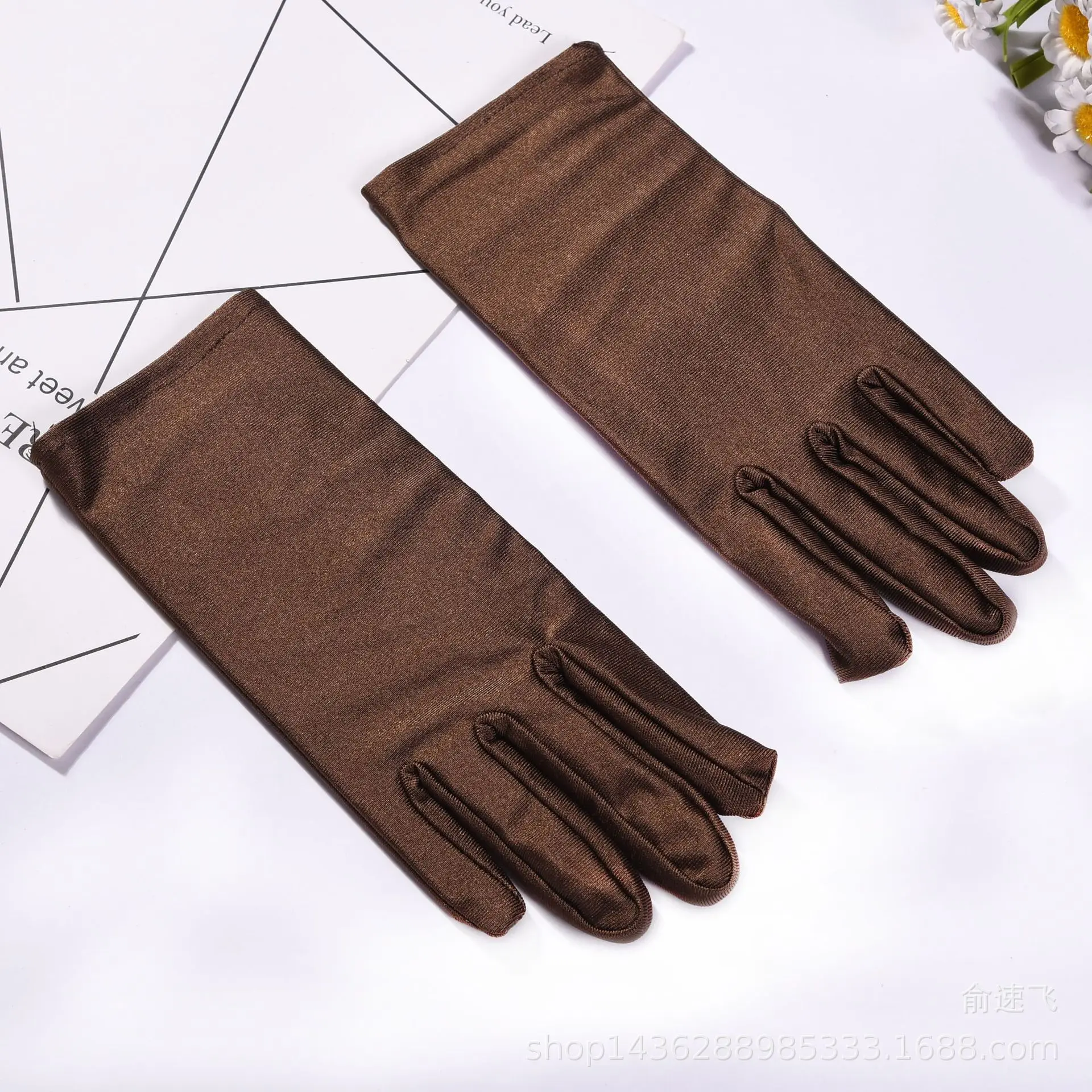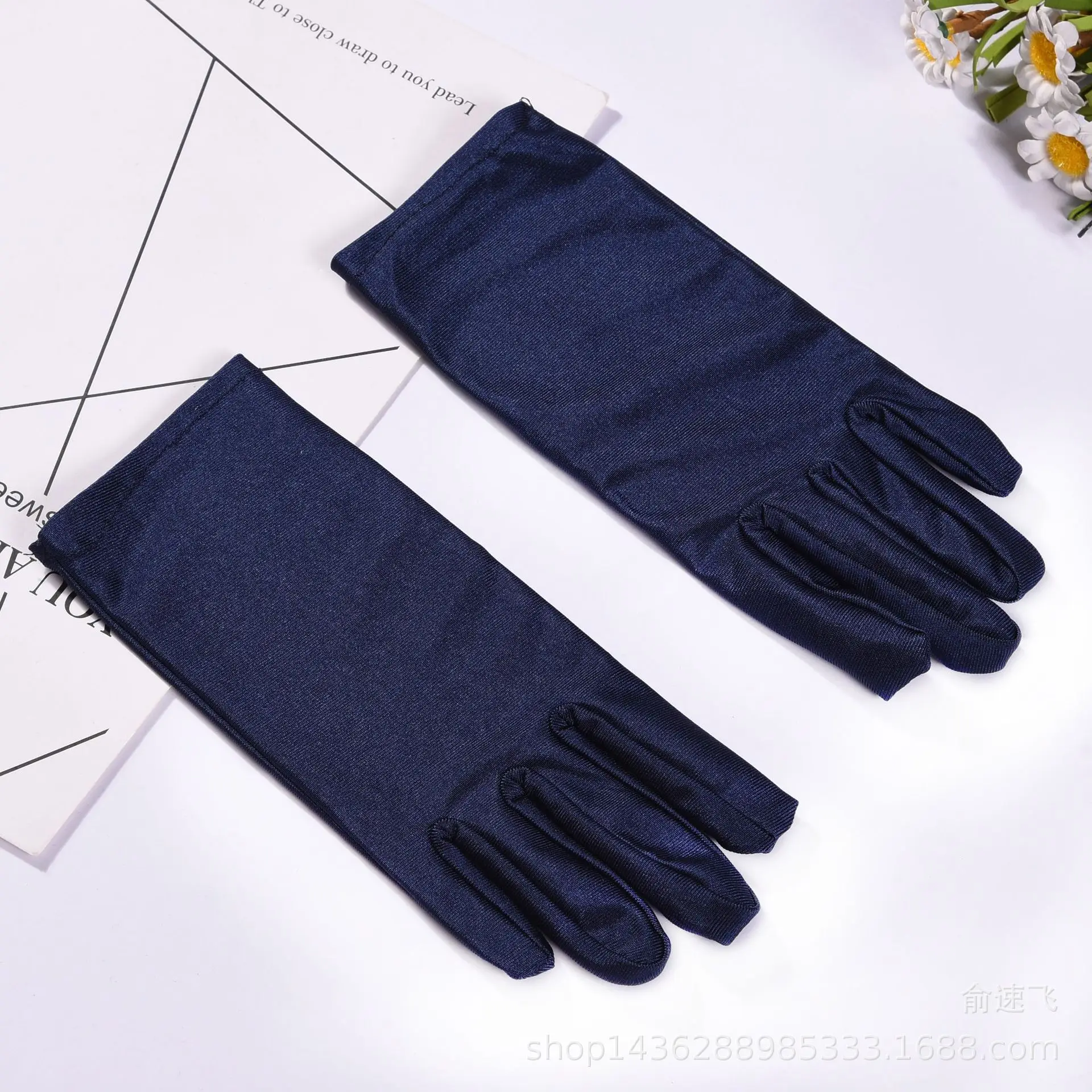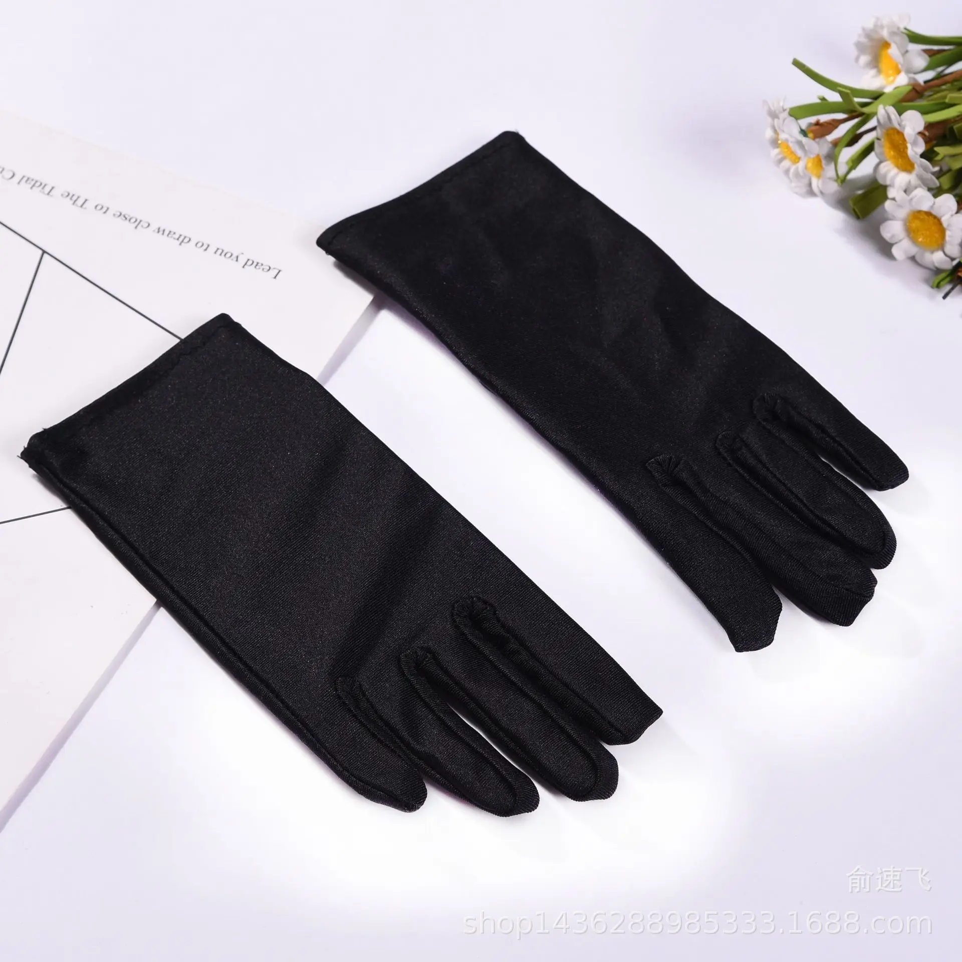 - Features a wrist-length cut with a sleek, minimalist style, complemented by a delicate floral pattern on one pair for added visual interest.