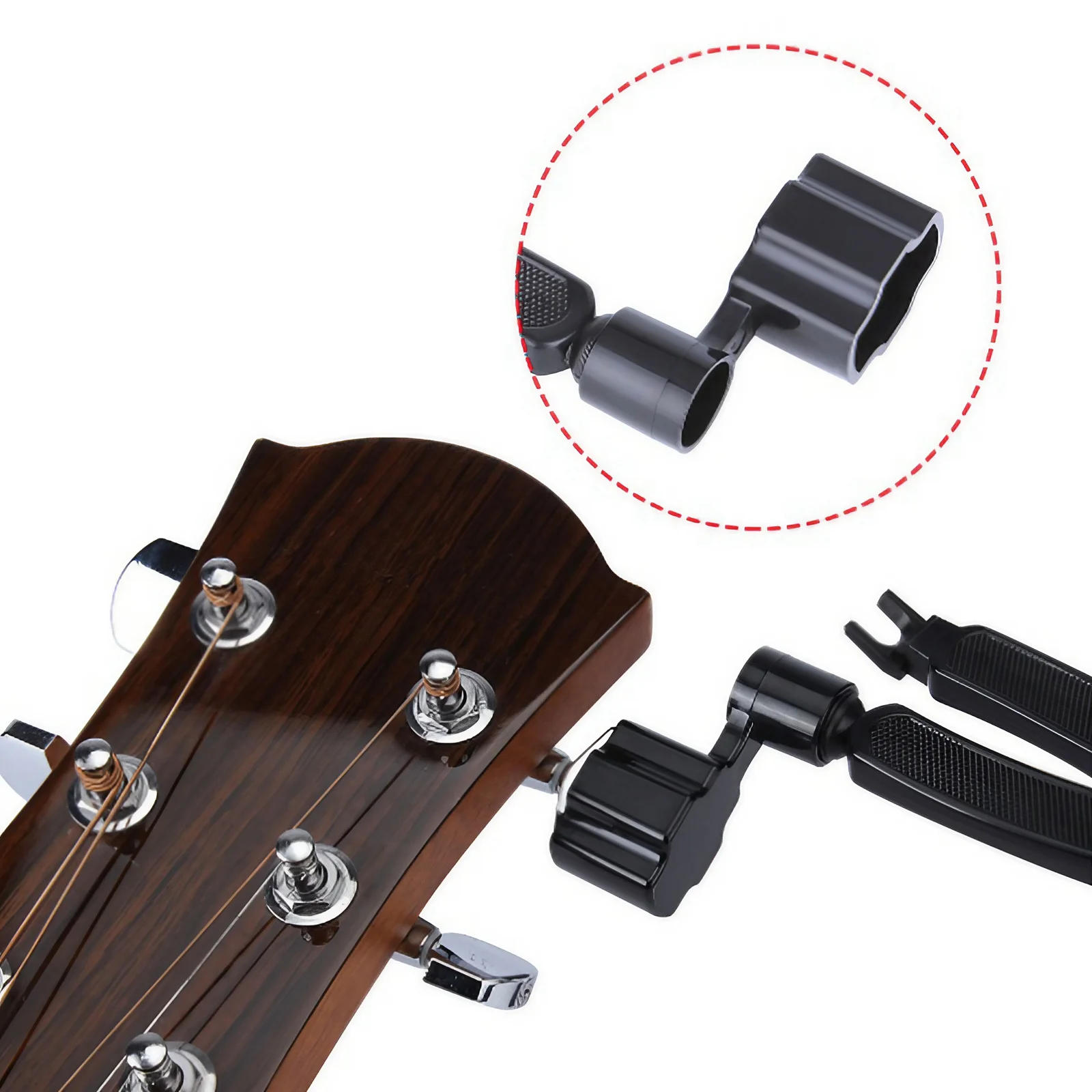 - This versatile tool functions as a string winder, string cutter, and bridge pin puller, compatible with electric, acoustic, bass, banjo, and mandolin guitars.