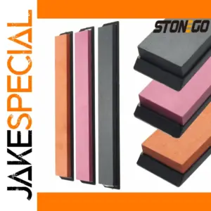 Elevate your sharpening routine with this set of natural water stones, featuring grits of 1000#, 3000#, and 5000# for precise edge refinement. Each rectangular stone measures 150 x 20 x 5 mm (5.905 x 0.787 x 0.196″) and rests securely on a slim, flat black base measuring 160 x 21 x 4 mm (6.29 x 0.826 x 0.157″). Crafted from natural stone, these versatile whetstones are ideal for metalworking and DIY sharpening tasks, offering a smooth fine-grit surface with no chemical treatments. Whether purchased as individual stones or as a complete set, they provide durability, stability, and vibrant color contrast for a professional finishing touch.