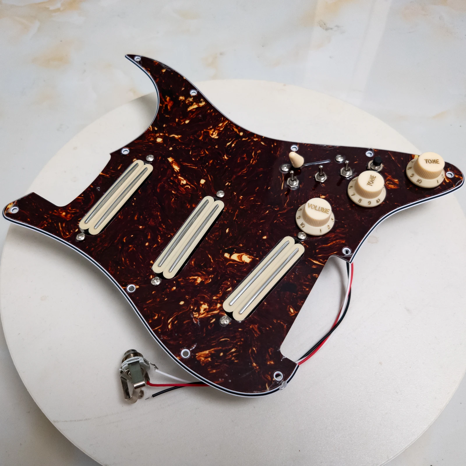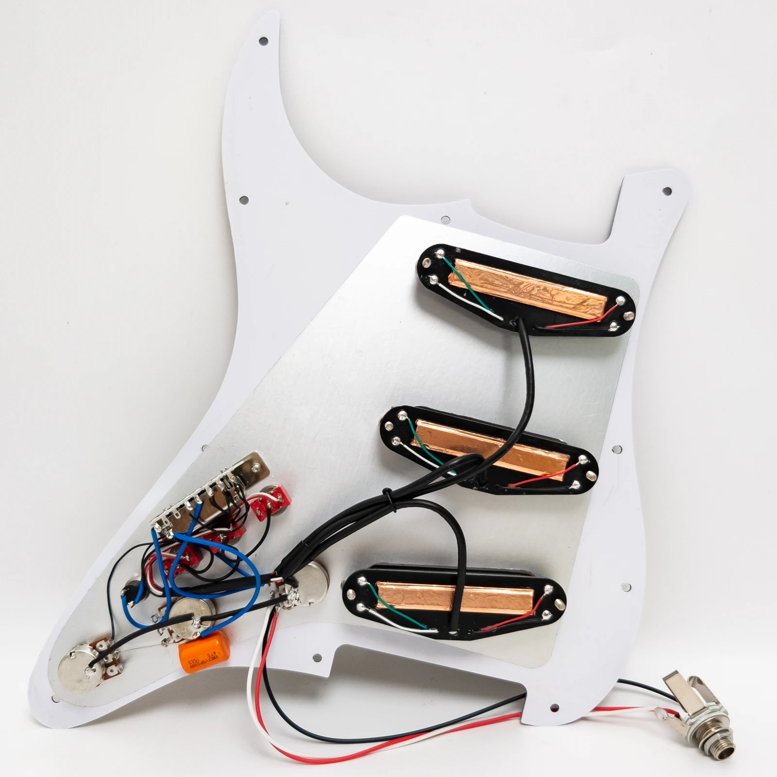 Transform your playing experience effortlessly with this premium, prewired pickguard. Its high-quality components, combined with the vintage aesthetic, ensure both reliable performance and striking visual appeal. Whether you're upgrading your current guitar or building a custom-style instrument, this set simplifies installation while providing a rich, versatile sound palette. Enjoy the confidence of a professional modification—enhance your tone and style today with this elegant, functional upgrade!