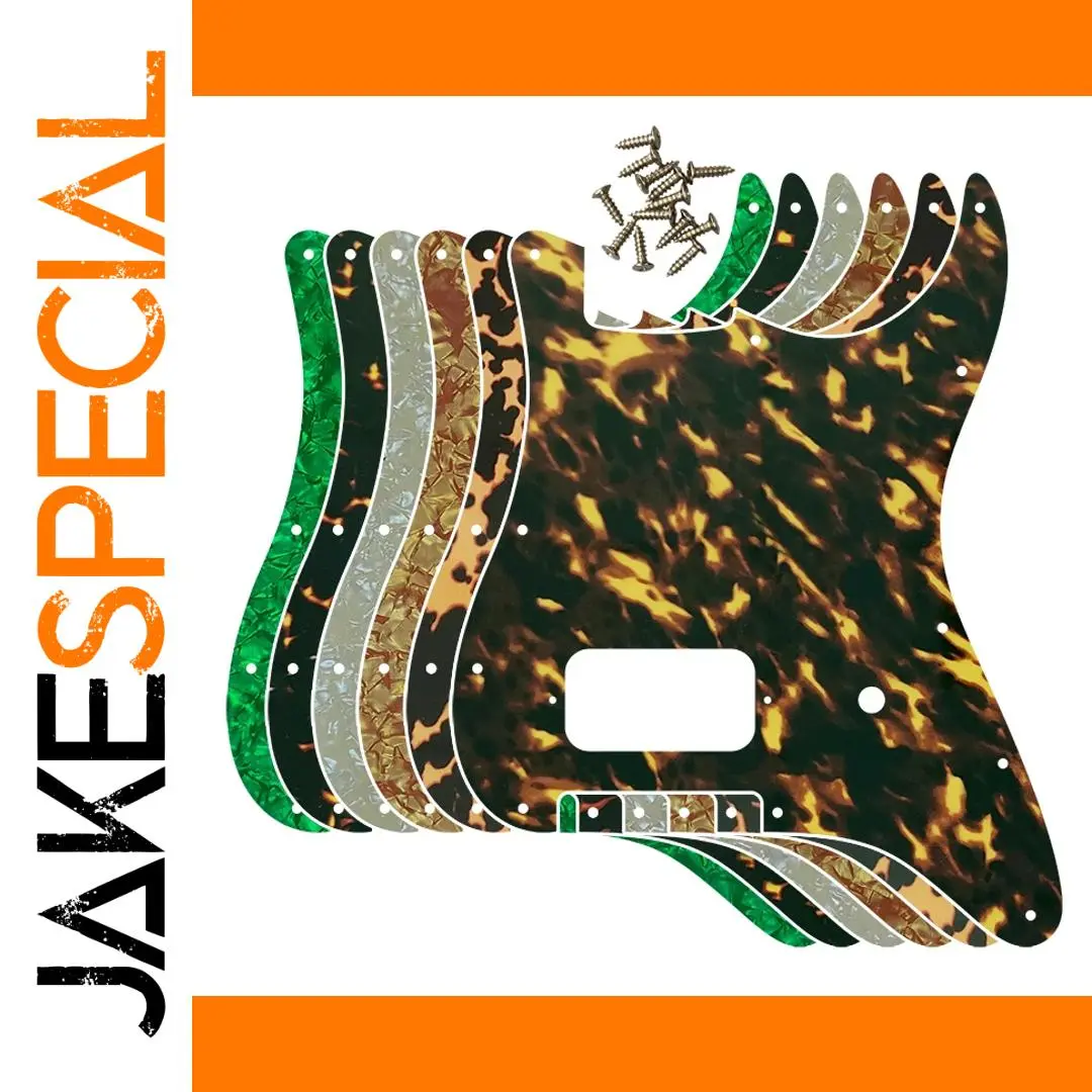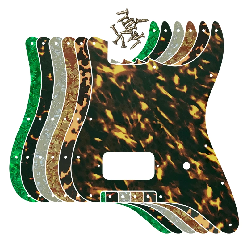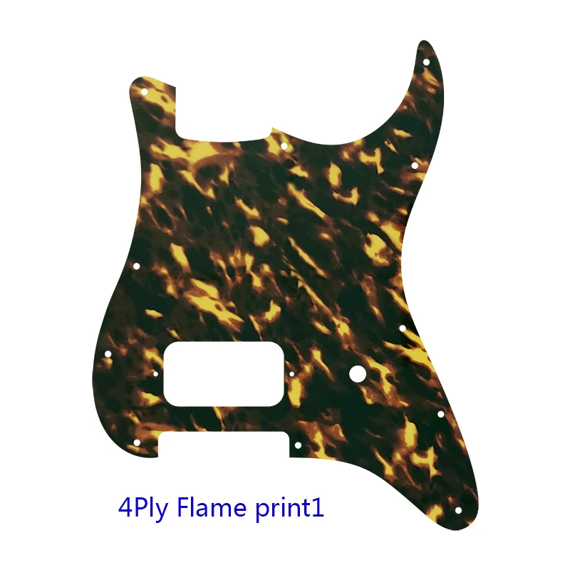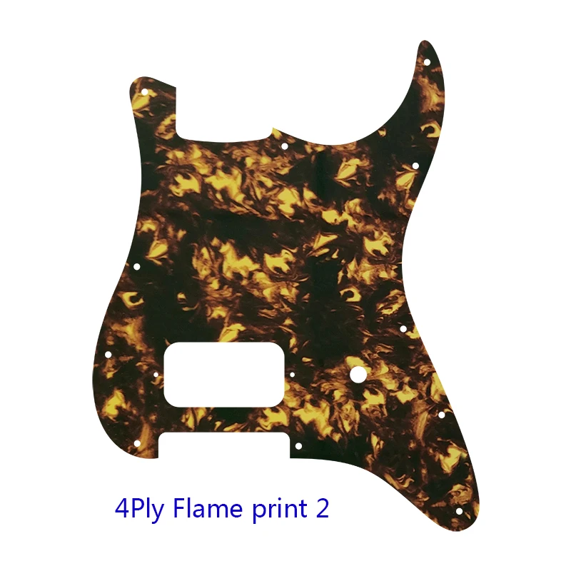 Transform your US Strat H guitar with this high-quality, visually striking pickguard. Designed specifically to fit FD US 11 mounting screw hole standards, it’s the perfect upgrade for enthusiasts seeking both style and protection. Crafted from durable 3-ply or 4-ply composite PVC, it offers excellent anti-scratch features and a glossy finish that mimics natural textures like tortoiseshell and abalone. Featuring an integrated aluminum foil shield, it significantly reduces noise for cleaner sound output. The pickguard's smooth, rounded edges and precise cutouts ensure seamless installation, enhancing your guitar’s aesthetic and functionality. Available in a variety of vibrant finishes—from fiery flame prints to elegant pearl and tortoise patterns—this pickguard transforms your instrument into a truly personalized masterpiece.