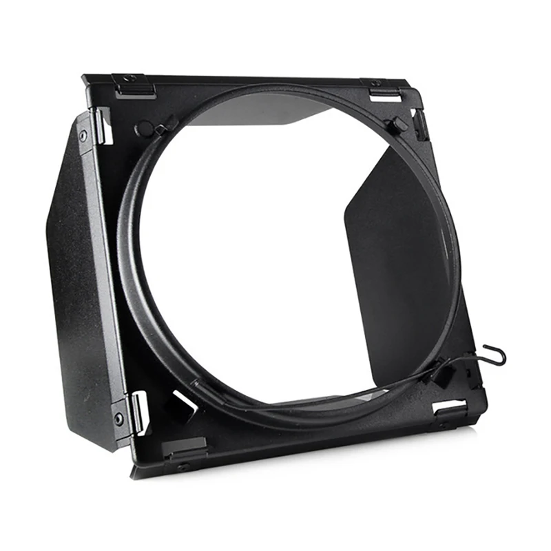 - Contains a set of adjustable black barn doors made from durable plastic and metal, enabling precise control over light direction and spread for studio photography.