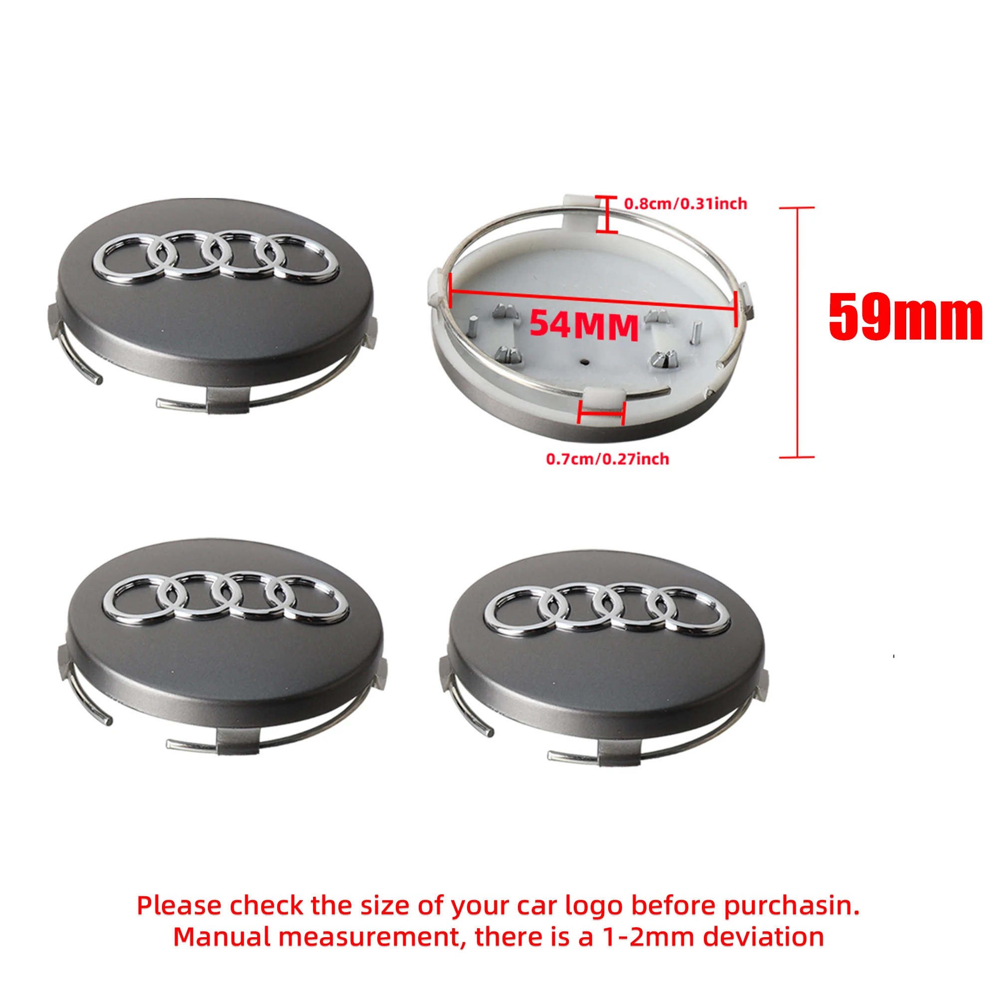 - Each hub cap features a raised four-ring logo at the center, creating a bold focal point that emphasizes a sporty and premium look.
