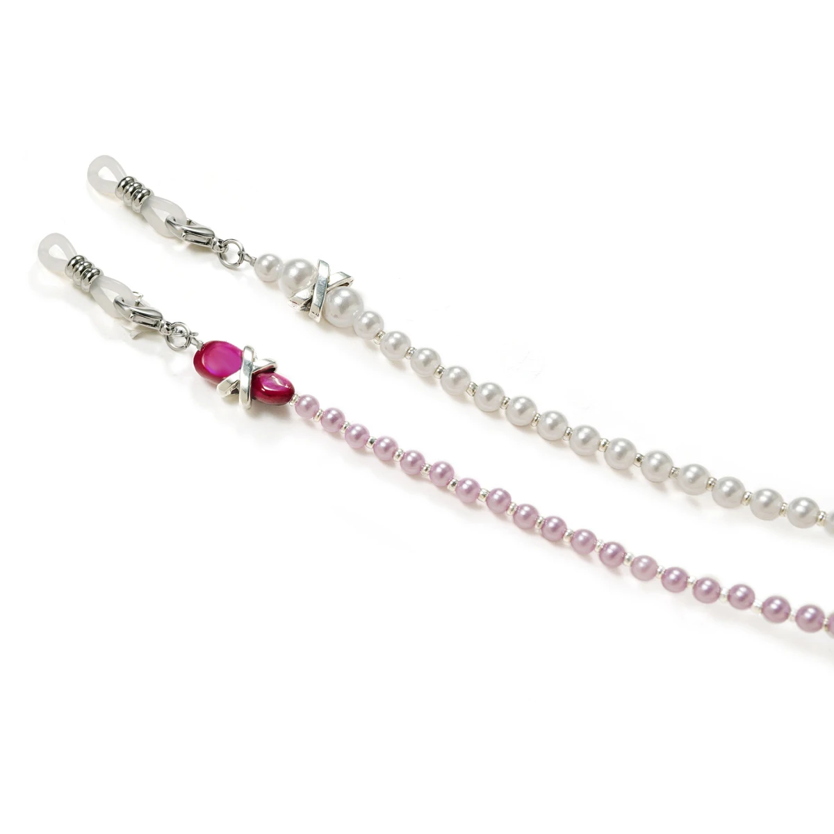 Enhance your style with this elegant 75 cm beaded eyeglasses chain, featuring a modern geometric design with smooth, shiny acrylic beads in soft pink and white tones. Crafted from durable copper metal with silver-tone clasps and decorative accents, it offers a safe and fashionable way to keep your eyewear close. Perfect as a pearl lanyard or necklace, this accessory adds a chic touch to any outfit, blending minimalist elegance with vibrant color contrast. Designed for women, it combines lightweight comfort with contemporary style, making it a versatile addition to your everyday accessories.