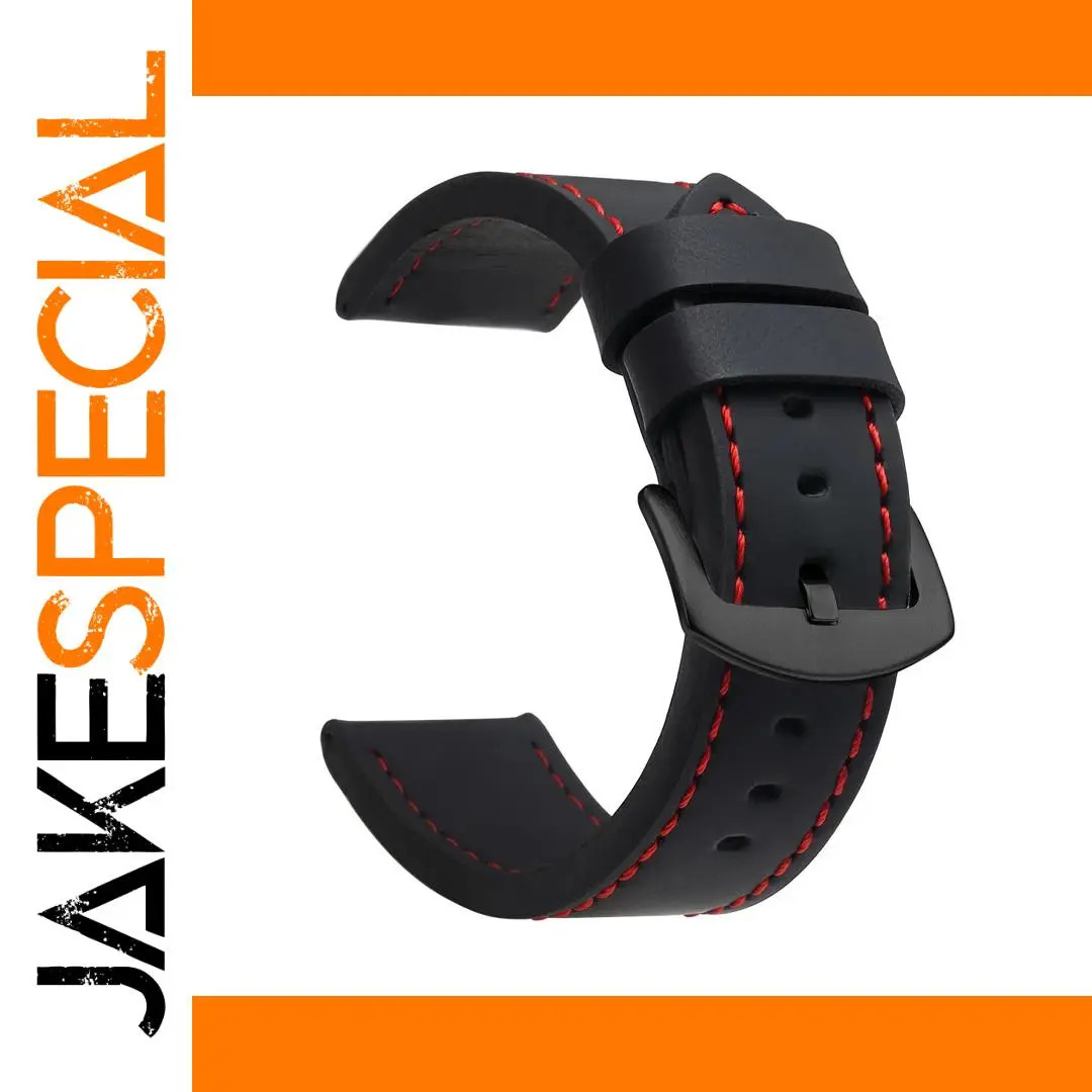 Elevate your wrist game with this premium watch strap, which combines a sleek black leather design with contrasting red stitching for a bold yet elegant look. The strap is versatile enough for both casual and sporty settings, featuring a durable stainless steel buckle that ensures a secure fit. With adjustable holes for comfort, this strap measures 22cm in length and comes in widths of 18mm, 20mm, 22mm, and 24mm, making it a perfect replacement for any watch. Embrace sophistication and practicality with this stunning accessory, which enhances your timepiece’s individuality and charm.