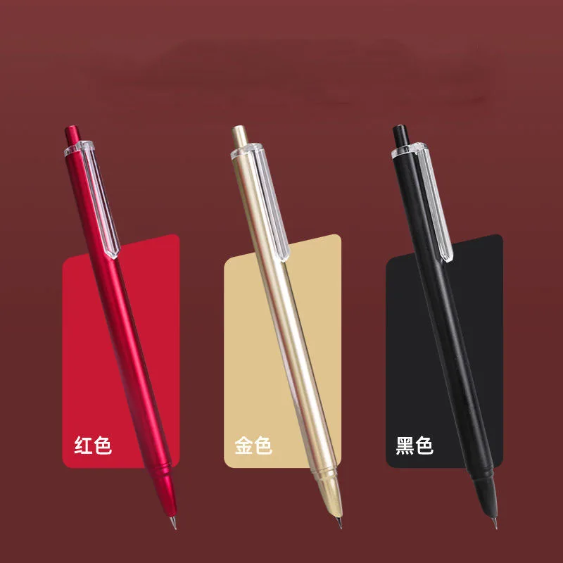 Imagine elevating your writing experience with this sleek press fountain pen, designed for those who value style and function. Crafted from durable plastic, it weighs only 9 grams, ensuring a lightweight feel for comfortable extended use. Its minimalist, streamlined silhouette features a cylindrical shape that fits naturally in your hand. The hooded F nib, concealed within the body, offers a clean, modern look while providing a precise 0.38mm writing point that delivers smooth, crisp lines. Available in vibrant red, metallic champagne, gold, matte black, and other versatile colors like A2, A6, A7, A1, A4, A5, and A3, this pen seamlessly combines elegance and utility. Its transparent clip adds a touch of subtle sophistication, making it ideal for business, office, school, or personal writing tasks.