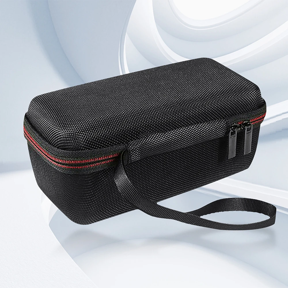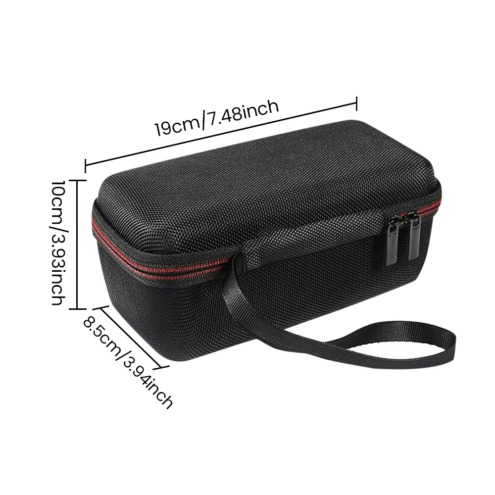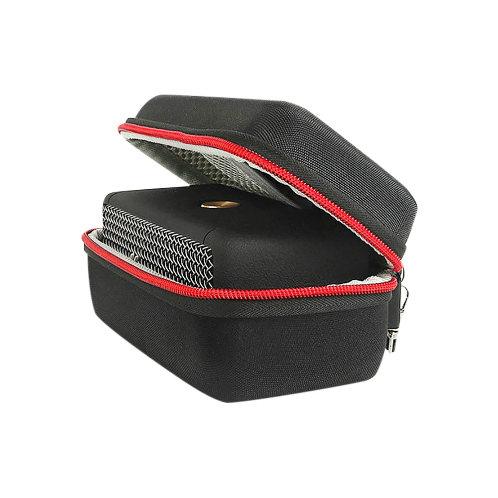 This sophisticated storage case is specifically designed to protect your Marshall Emberton Bluetooth speaker. Crafted from durable, compression-resistant EVA material, it ensures long-lasting protection and resilience. With external dimensions of 19 cm in length, 10 cm in width, and 8.5 cm in height, it is compact yet spacious enough to accommodate your speaker snugly. The interior features a soft, fluffy lining that adds an extra layer of cushioning. A vibrant red zipper enhances the sleek black exterior, offering both aesthetic appeal and practical functionality with its dual pull head design. Choose this case and enjoy a blend of style and protection for your speaker during your travels.
