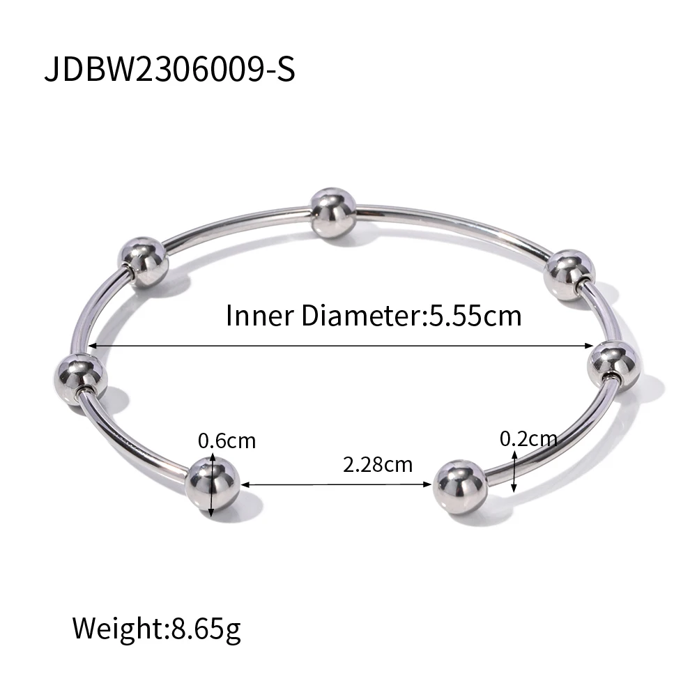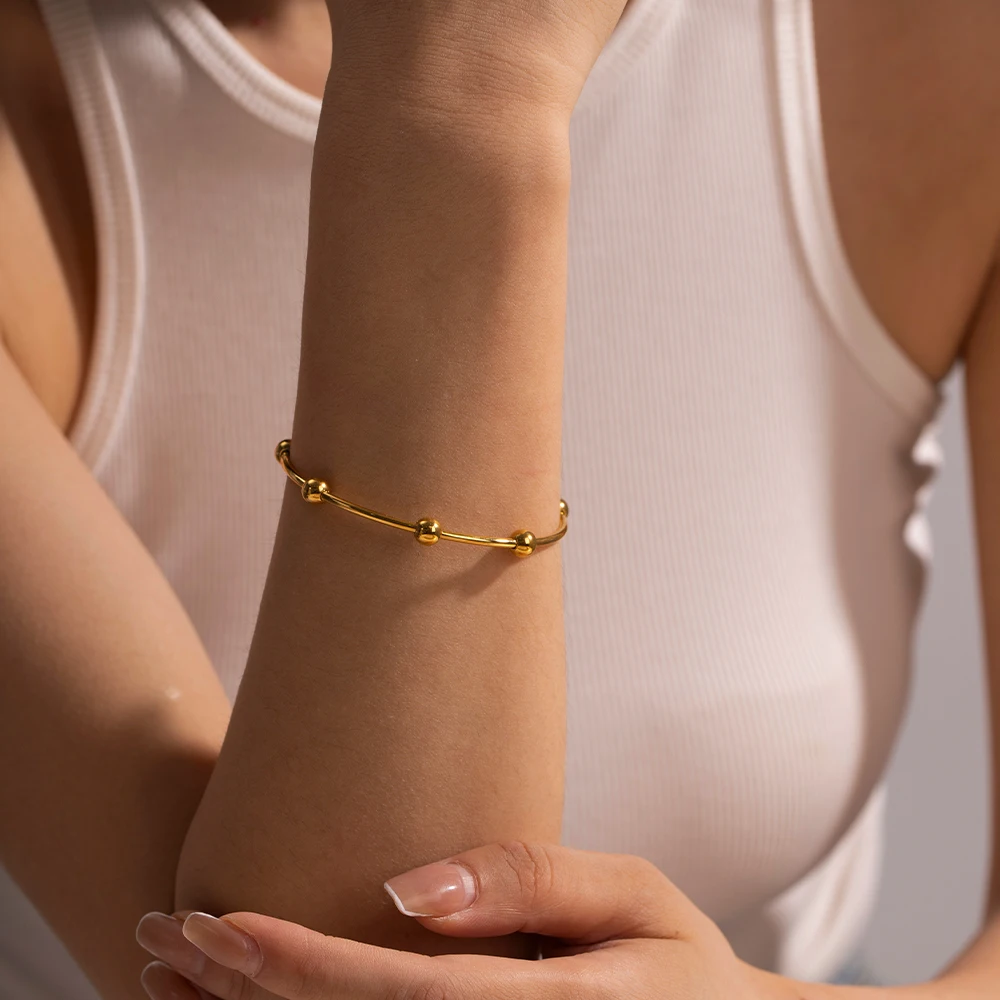 Experience effortless elegance with this set of two premium stainless steel bracelets, perfect for elevating your daily style or adding a sophisticated touch to special occasions. These open cuff bracelets feature a sleek, minimalist design with a slim, rounded profile that ensures all-day comfort. One bracelet shines with a luxurious gold finish, radiating warmth and timeless elegance, while the other boasts a modern chrome-like silver finish, offering a trendy, contemporary vibe. Accented with matching spherical beads, each piece adds subtle texture and visual harmony. Crafted from high-quality stainless steel, they are waterproof, corrosion-resistant, and tarnish-proof, promising long-lasting beauty. Their versatile design makes them easy to pair with any outfit, making these bracelets a must-have for your jewelry collection.
