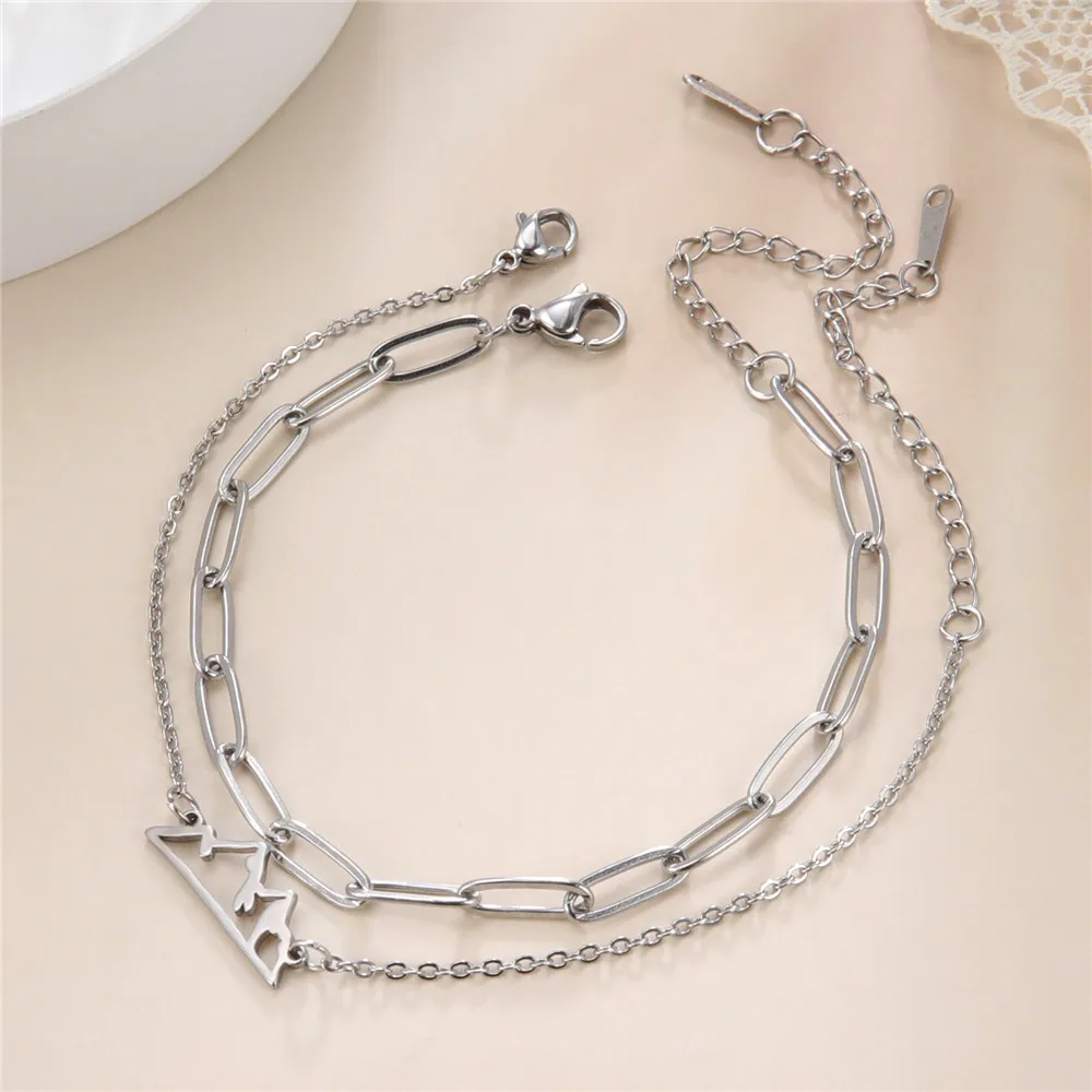 Imagine yourself wearing this elegant stainless steel mountain charm bracelet, adding a touch of nature-inspired sophistication to your daily style. Its sleek silver finish, polished for a reflective shine, makes it perfect for both casual outings and special occasions. The delicate chain with small, uniform links offers a lightweight feel, while the adjustable length from 17 to 22 centimeters ensures a comfortable fit on any wrist. The minimalist mountain range charm, with sharp peaks and a smooth silhouette, evokes scenic beauty and adventure. Crafted from durable, rust-resistant stainless steel, this piece is designed to last, remaining shiny and new even after daily wear. Whether you're gifting yourself or a loved one, this bracelet promises elegance and versatility in one beautiful accessory.