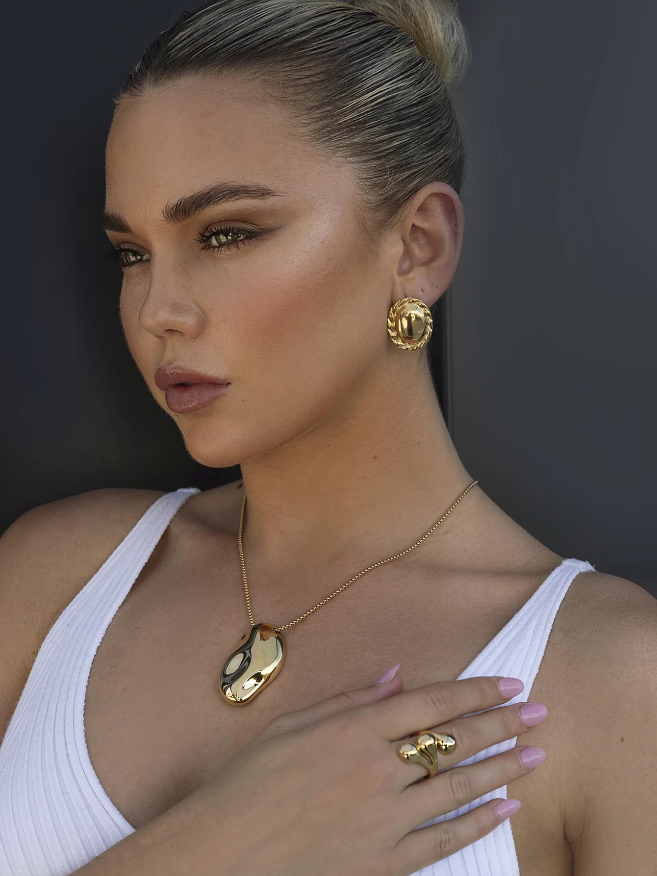 Immerse yourself in sophistication with this stunning women's jewelry piece. Crafted from high-quality stainless steel with a PVD gold coating, this necklace features a delicate yet bold design, perfect for elevating any outfit. The irregular, concave hammered pendant presents a contemporary art vibe, resembling an abstract pebble in a smooth, reflective finish. Its geometric shape adds a unique touch while maintaining elegance. Lightweight at just 15 grams, it offers comfort for all-day wear while remaining durable and resistant to scratches or fading. Ideal for parties or casual outings, this necklace effortlessly combines modern trendiness with long-lasting beauty. Experience a piece that makes a statement and complements your style with confidence.
