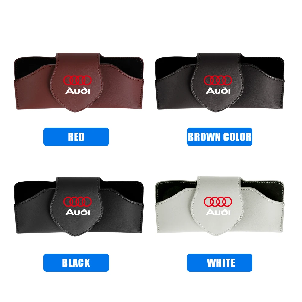 Enhance your vehicle’s interior with this sleek sun visor glasses holder, measuring 16.9 cm by 8.9 cm and crafted from durable, scratch-resistant high-quality PU leather. Featuring a magnetic firmware switch for secure, easy access, it efficiently stores glasses, cards, tickets, and pens while maintaining a tidy cabin. Its dustproof, heat-resistant, and shockproof construction ensures durability during daily use. Compatible with a wide range of vehicle models including A1 through A8, Q1-Q8, RS, S, and Quattro series, this minimalist accessory is available in Black, Brown, Red, White, and stylish Sline versions, seamlessly blending practicality with sophisticated style.