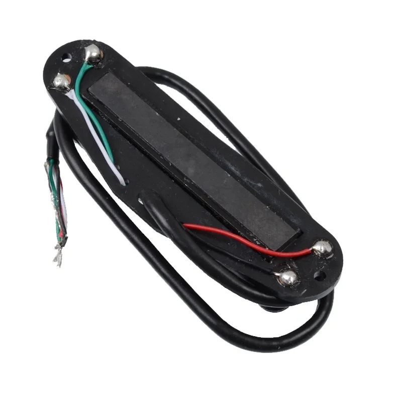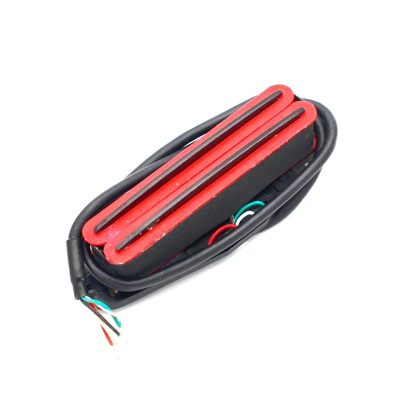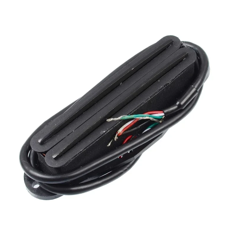 Enhance your electric guitar sound with this high-quality Twin Blade Dual Rail Humbucker, featuring a double coil design with ceramic bar magnets for effective hum-canceling and noise reduction. The sleek black plastic casing houses dual metal blade pole pieces, available in various color options such as Ivory with Silver, Red with Black, Black with Black, and more, adding a personalized touch. With a 300mm shielded four-conduct cable and an impedance of approximately 9K ohms, this pickup offers a clear, bright tone suitable for ST style guitars. Its durable construction combines metal and plastic materials, making it an excellent replacement part to upgrade your instrument’s performance and aesthetic.