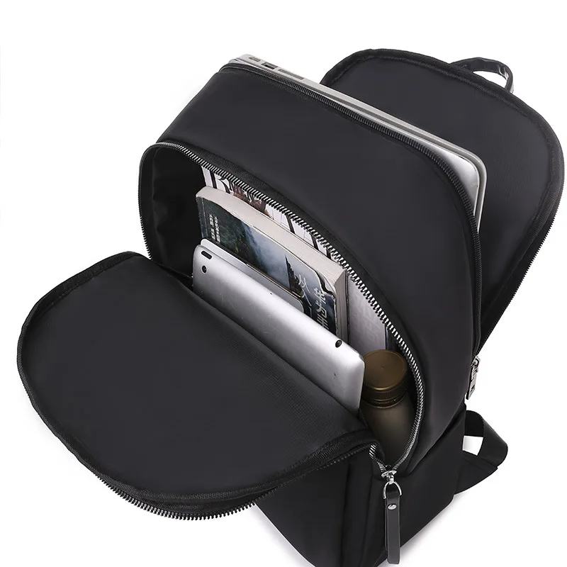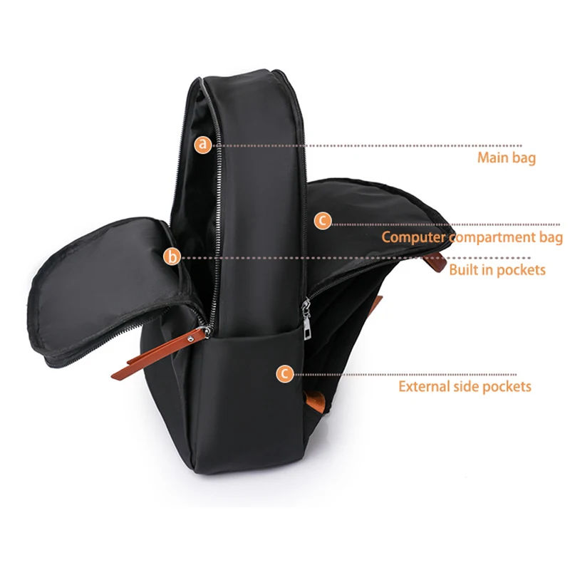 This versatile unisex backpack features a durable and waterproof Oxford material, offering a spacious capacity of 20-35 liters. Its dimensions are approximately 37 x 28 x 13 cm (14.56 x 11.02 x 5.11 in), making it ideal for carrying everyday essentials. The backpack includes a secure zipper closure and multiple pockets, including an interior slot pocket, a cell phone pocket, an interior zipper pocket, and a computer interlayer compartment suitable for a 14-inch laptop. Additionally, it has a front zipper pocket, a hidden back zipper pocket, and two side pockets. The adjustable dual shoulder straps and back luggage strap enhance comfort, perfect for both casual and professional settings.