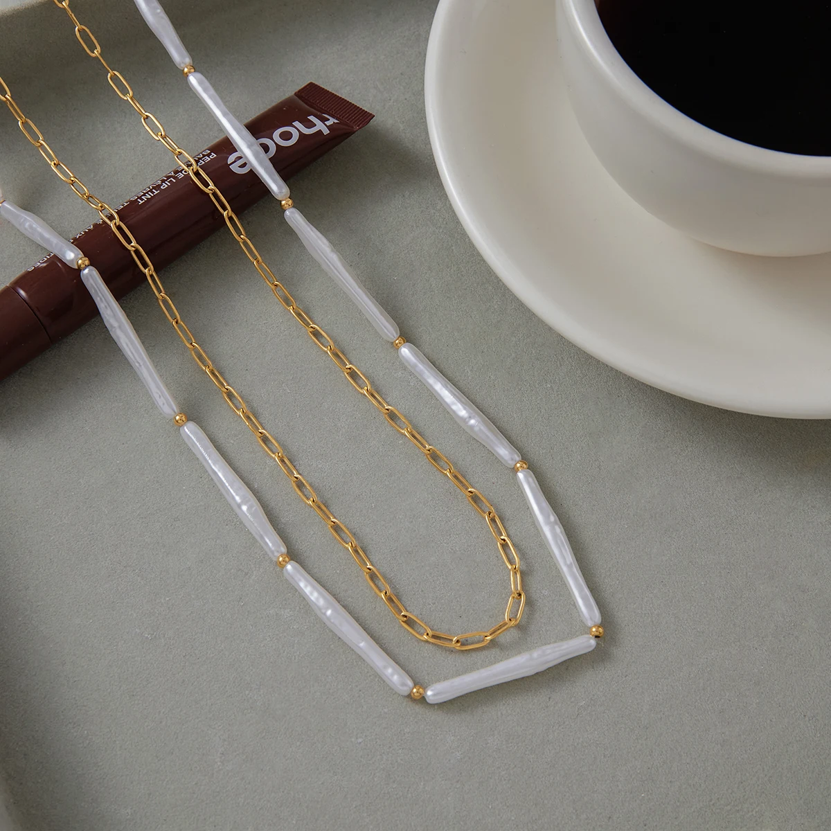 Discover the perfect blend of elegance and modern style with this trendy gold stainless steel chain necklace. Designed with a striking geometric shape, it features a delicate layer of small, irregular acrylic pearls that add a touch of subtle sophistication. The necklace's double-layered design makes it ideal for stylish stacking, offering a versatile accessory suited for both casual and party occasions. Crafted from high-quality stainless steel, it boasts a durable, shiny gold-tone finish free from high-concerned chemicals, ensuring safety and skin comfort. The adjustable link chain provides a comfortable fit, and its contemporary design complements various outfits, making it a must-have accessory in your jewelry collection. Show off your fashionable side confidently with this eye-catching piece that exudes both class and trendiness.
