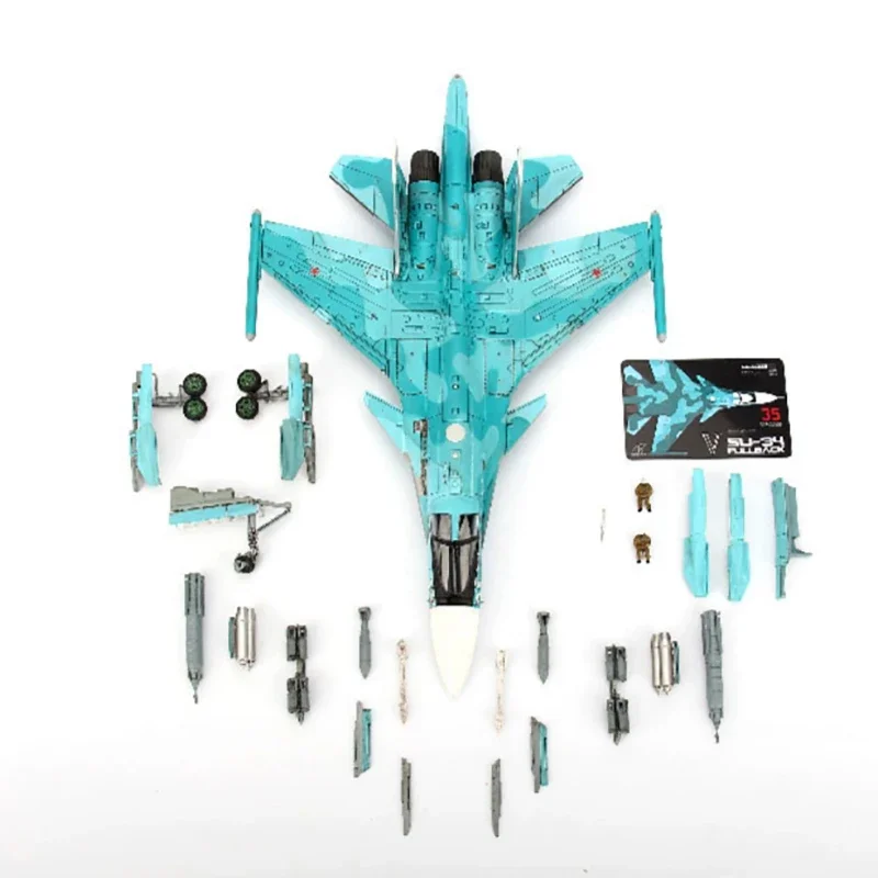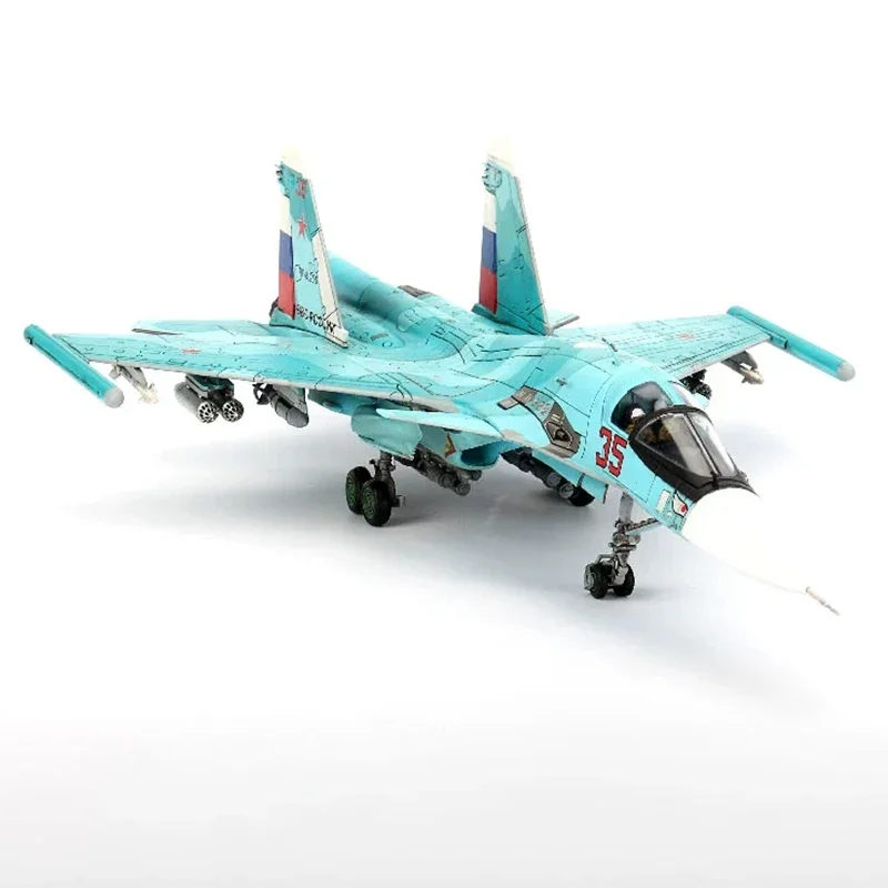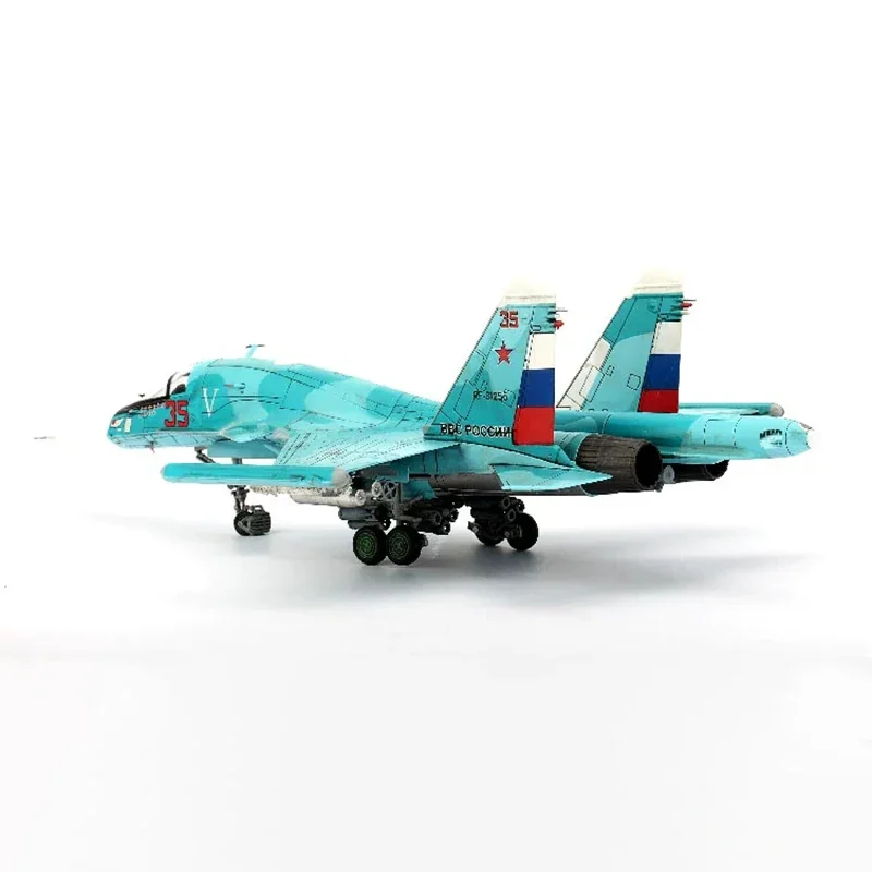 Bring home a highly detailed 1:72 scale diecast model of the SU-34 Russian Air Force fighter jet, measuring approximately 32 x 22 x 20 cm. Crafted from durable metal alloy, this static display piece features realistic proportions, intricate panel lines, and vivid markings—including red insignia on tall, swept-back twin vertical stabilizers. The model includes fully detailed wheels, with options for a version with or without a display stand. Perfect for military aviation enthusiasts and collectors, it enhances any home or office decor, offering a striking, authentic look at this powerful fighter aircraft. Suitable for ages 14 and above.