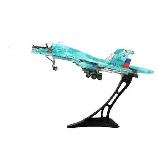 Imagine elevating your collection with this intricately detailed diecast model of the SU-34 fighter jet. Crafted from durable metal alloy, it captures the sleek silhouette and sharp angular features of the real aircraft. The model is painted in a striking light blue with darker blue accents, accented by bold red markings on the vertical stabilizers and red-star insignia, adding an authoritative touch. With meticulously detailed panel lines and insignia, it offers exceptional realism. Measuring approximately 32 cm in length, 22 cm in wingspan, and 20 cm in height, it is perfect for display on desks or shelves. Whether for decoration or as a gift for aviation enthusiasts, this model promises impressive visual impact and a sense of pride.