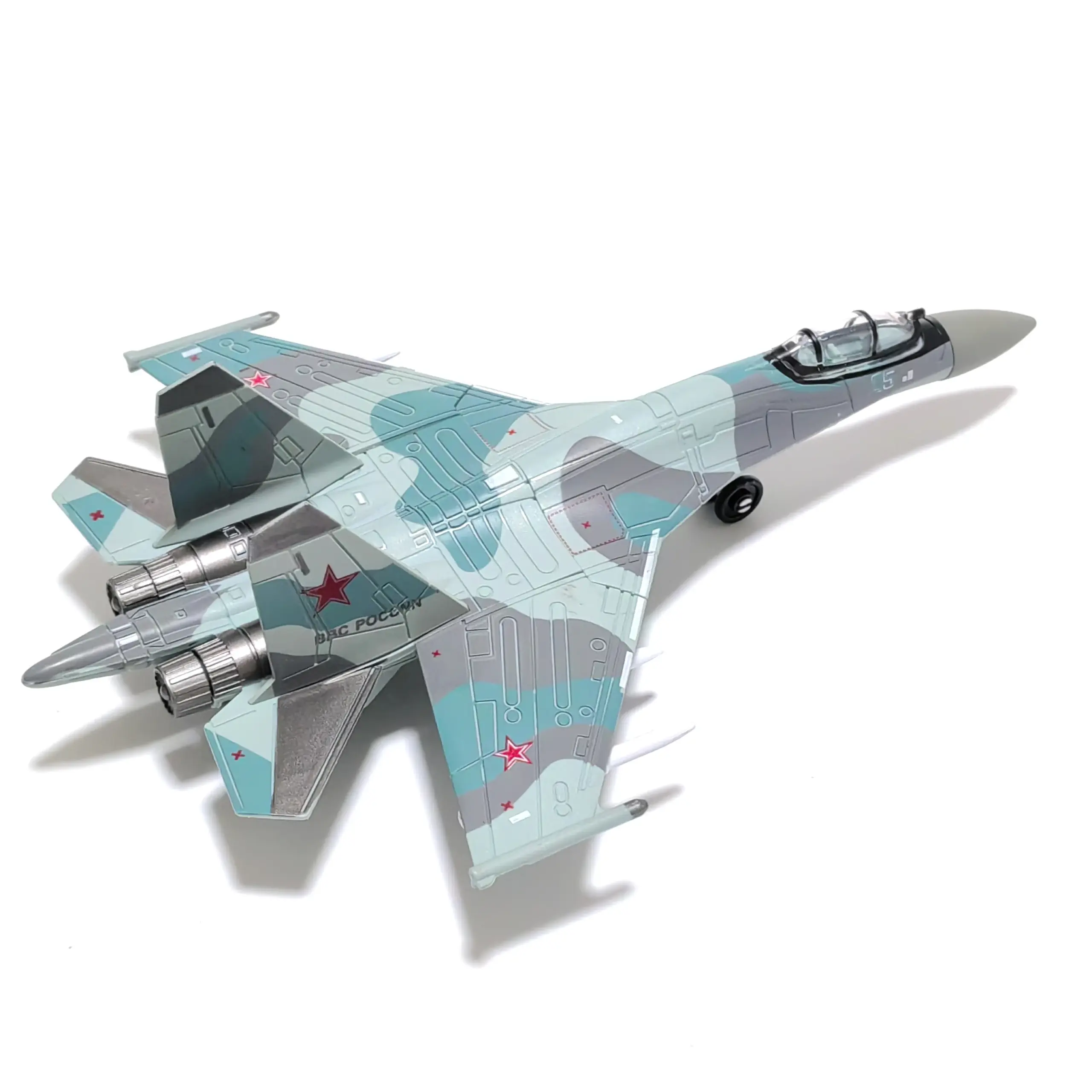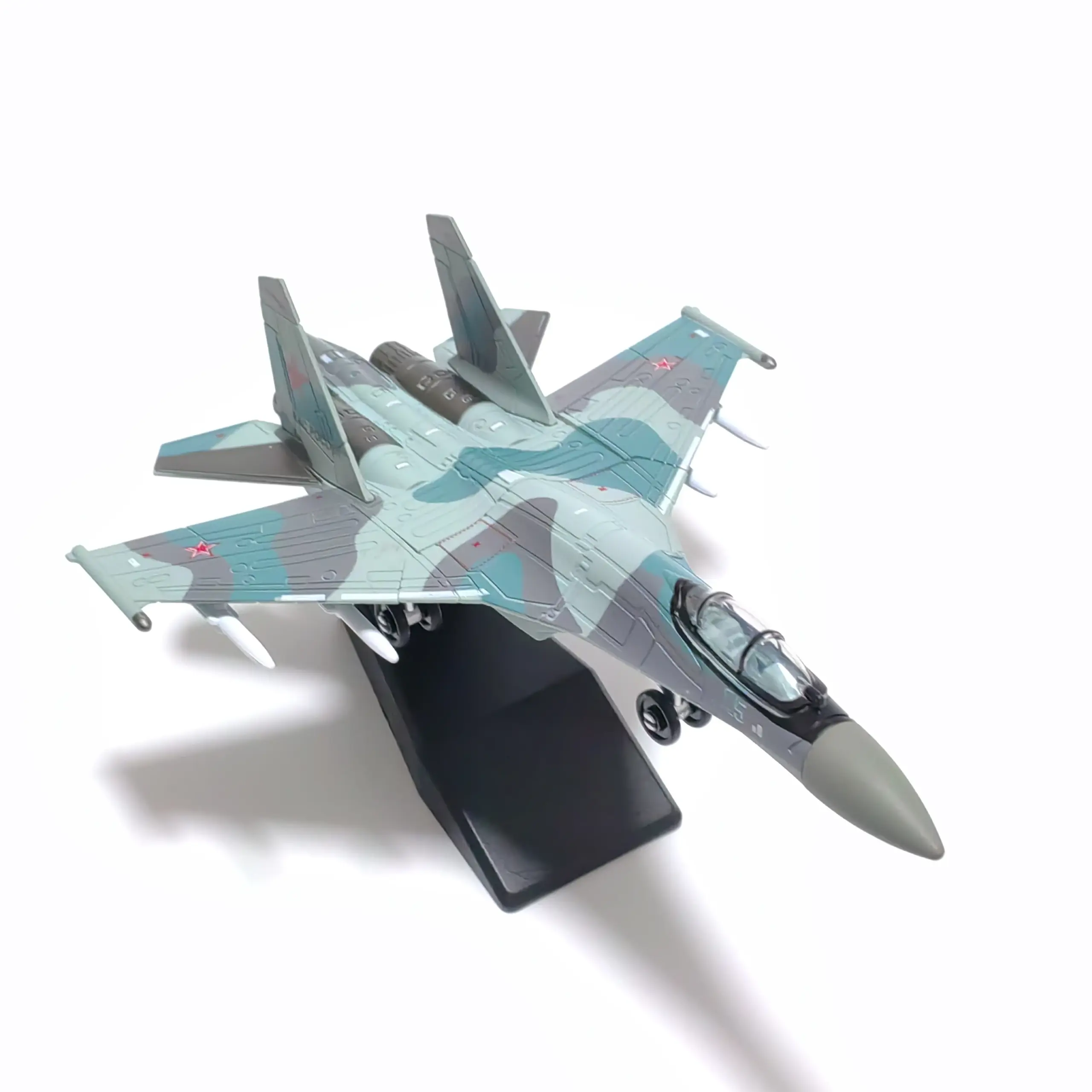 Enhance your collection with this detailed 1:100 scale plastic assembly model of the Su-35 fighter jet, designed for ages 14 and above. Featuring a sleek modern design with a camouflage in shades of blue and gray, the model showcases a pointed nose cone in a light grayish-beige tone, a transparent canopy revealing the cockpit, twin outward-angled vertical stabilizers with red star emblems, and swept-back wings with pointed winglets. Miniature white missiles with black tips are mounted underneath, complementing the aircraft’s realistic engine intakes and exhaust details. Minor imperfections such as tiny paint flaws or seam lines are normal, and parts can be easily reattached with standard adhesive, making it an ideal item for display, decoration, or creative gifting.
