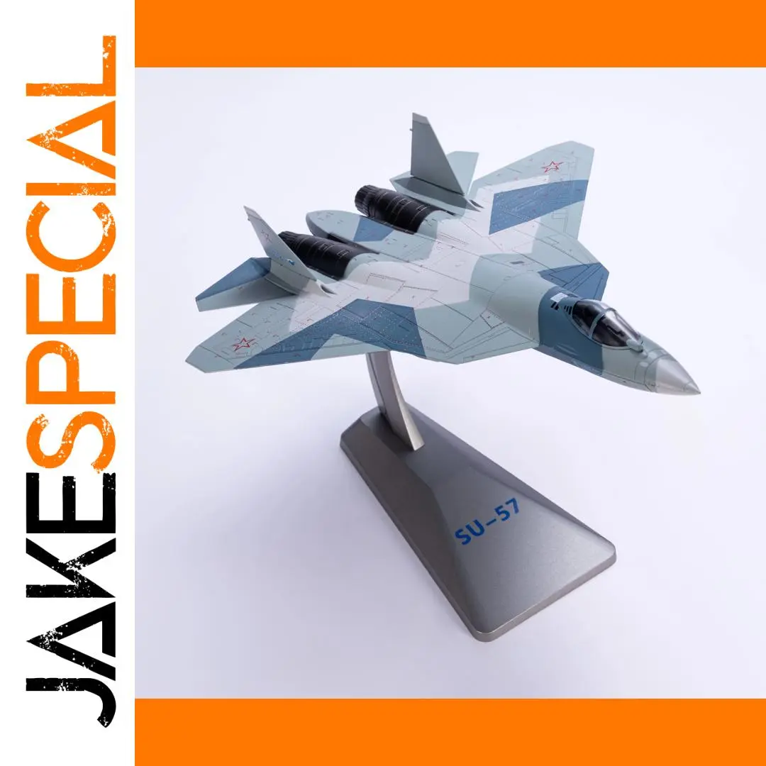 Bring home the detailed excellence of the SU-57 with this 1/72 metal scale model, perfect for display and collection. Crafted from durable metal, it features a sleek, modern design with angular wings, sharp nose, and surface panel lines, finished in light gray with blue accents and detailed red star markings. The model includes a dedicated display stand, allowing you to showcase its dynamic, flight-ready pose at an upward angle. Packaged in an exclusive individual color box for protection, minor imperfections like scratches or paint flaws may occur, emphasizing its handcrafted, collectible quality. Ideal for aviation enthusiasts and collectors aging 14 and older.