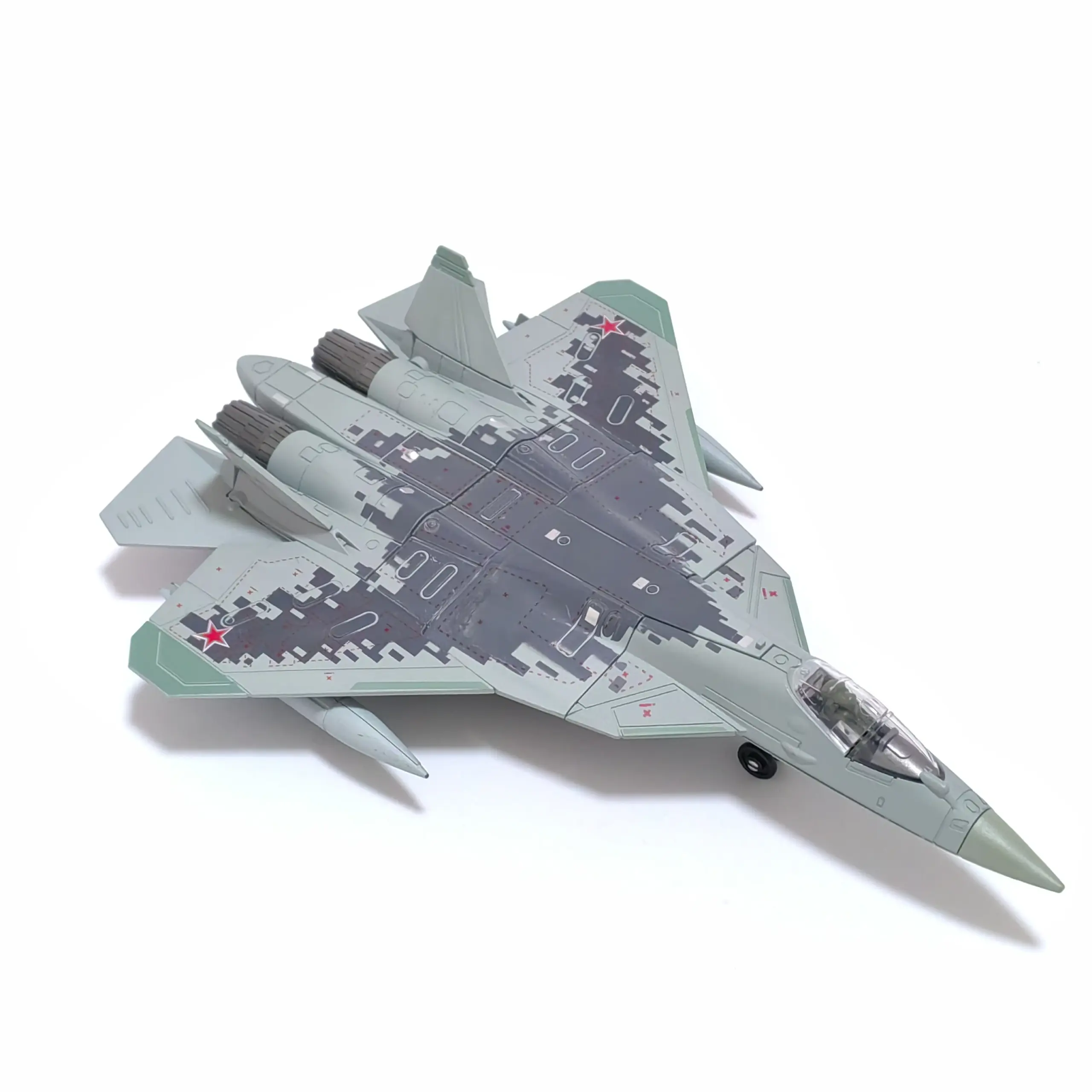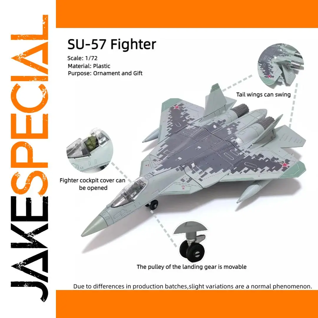 - Constructed from high-quality plastic, maintaining durability, with precise surface textures that replicate the intricate details of the real SU-57 fighter jet.