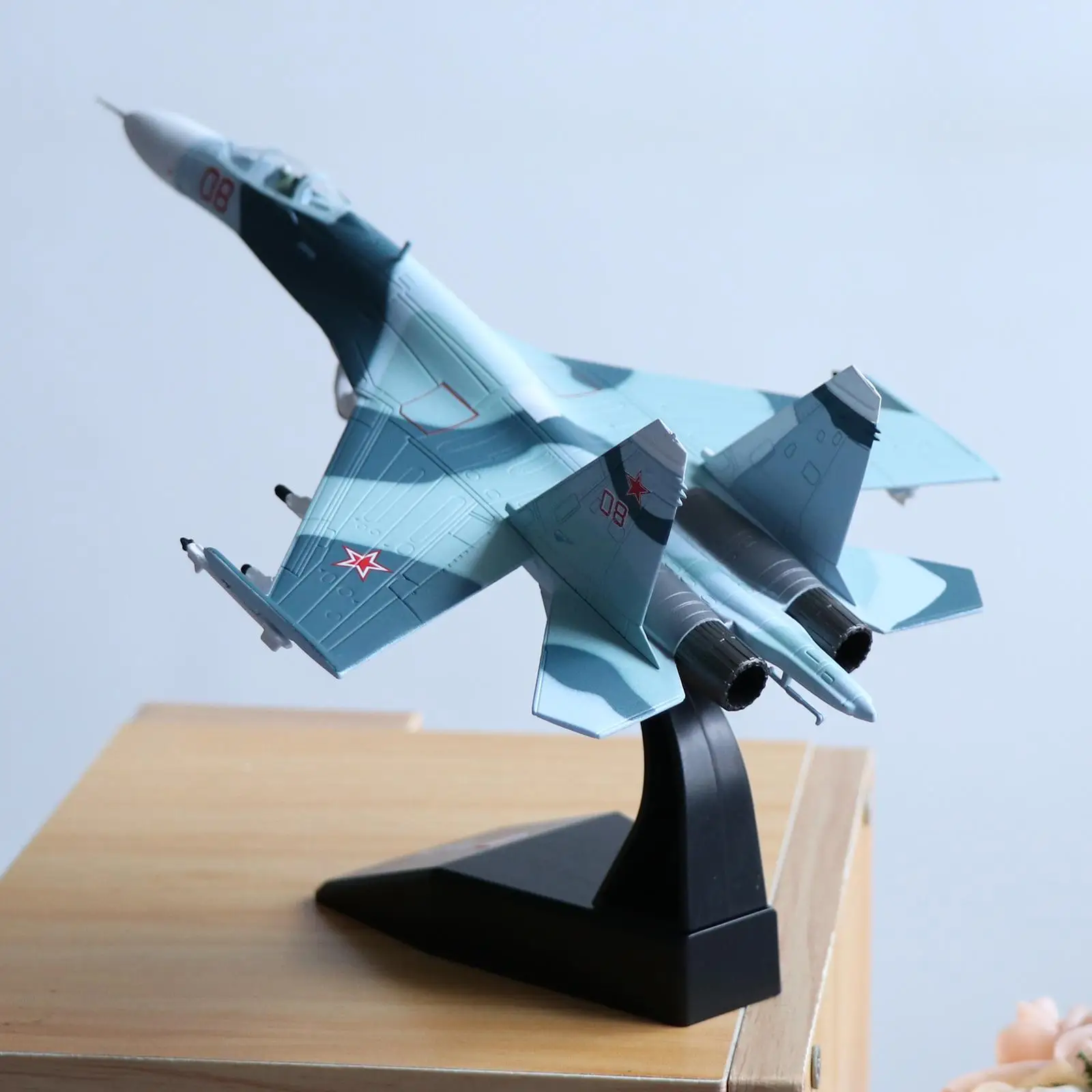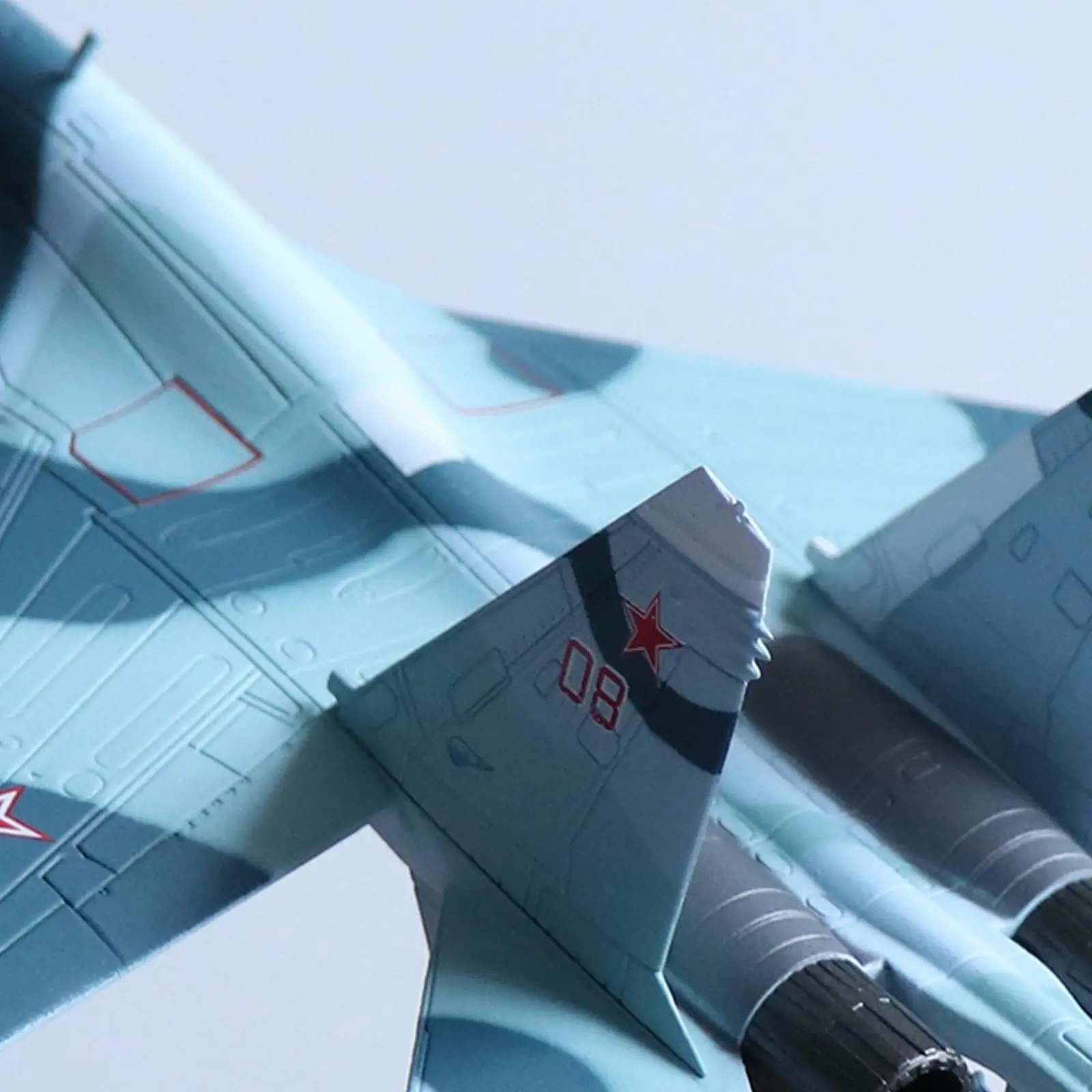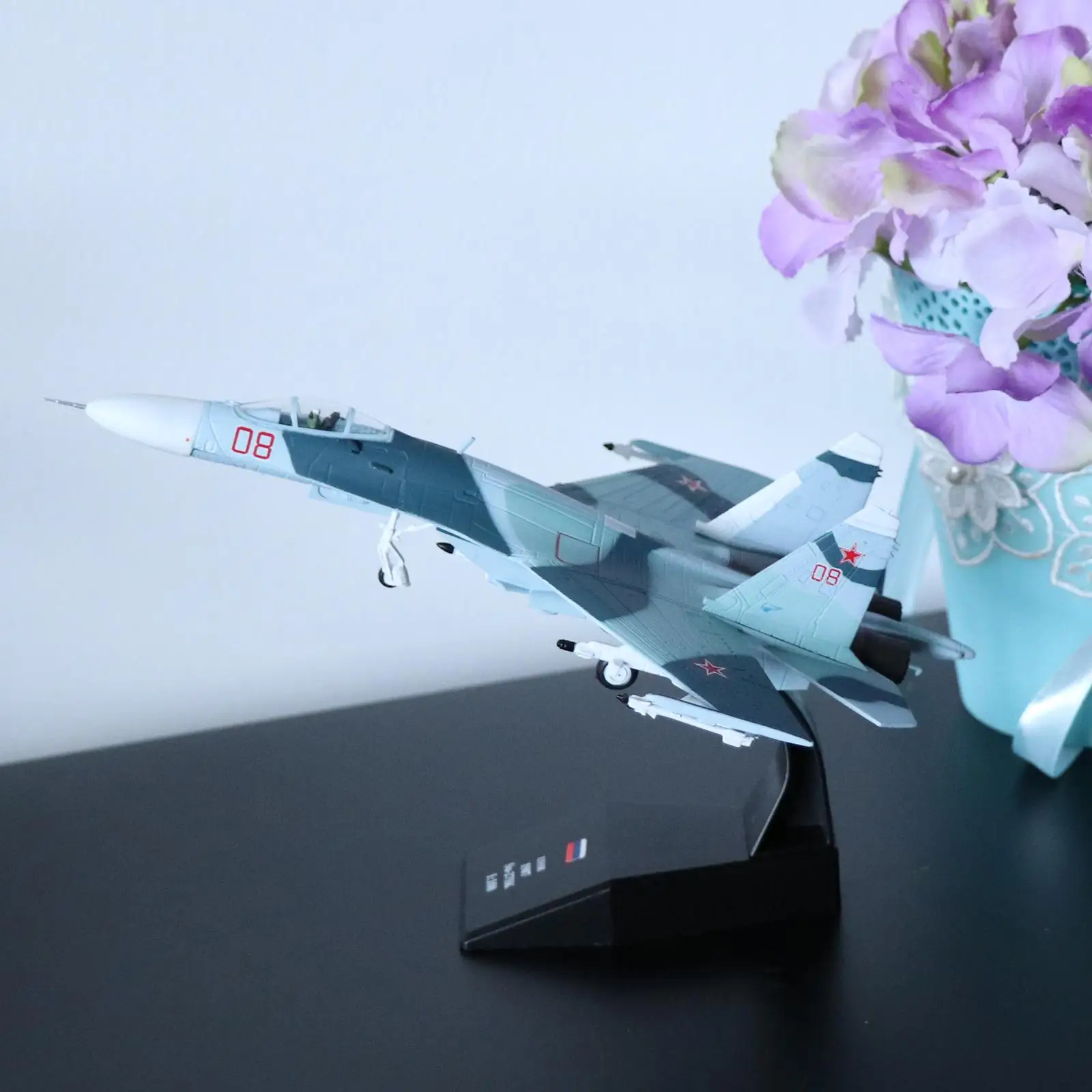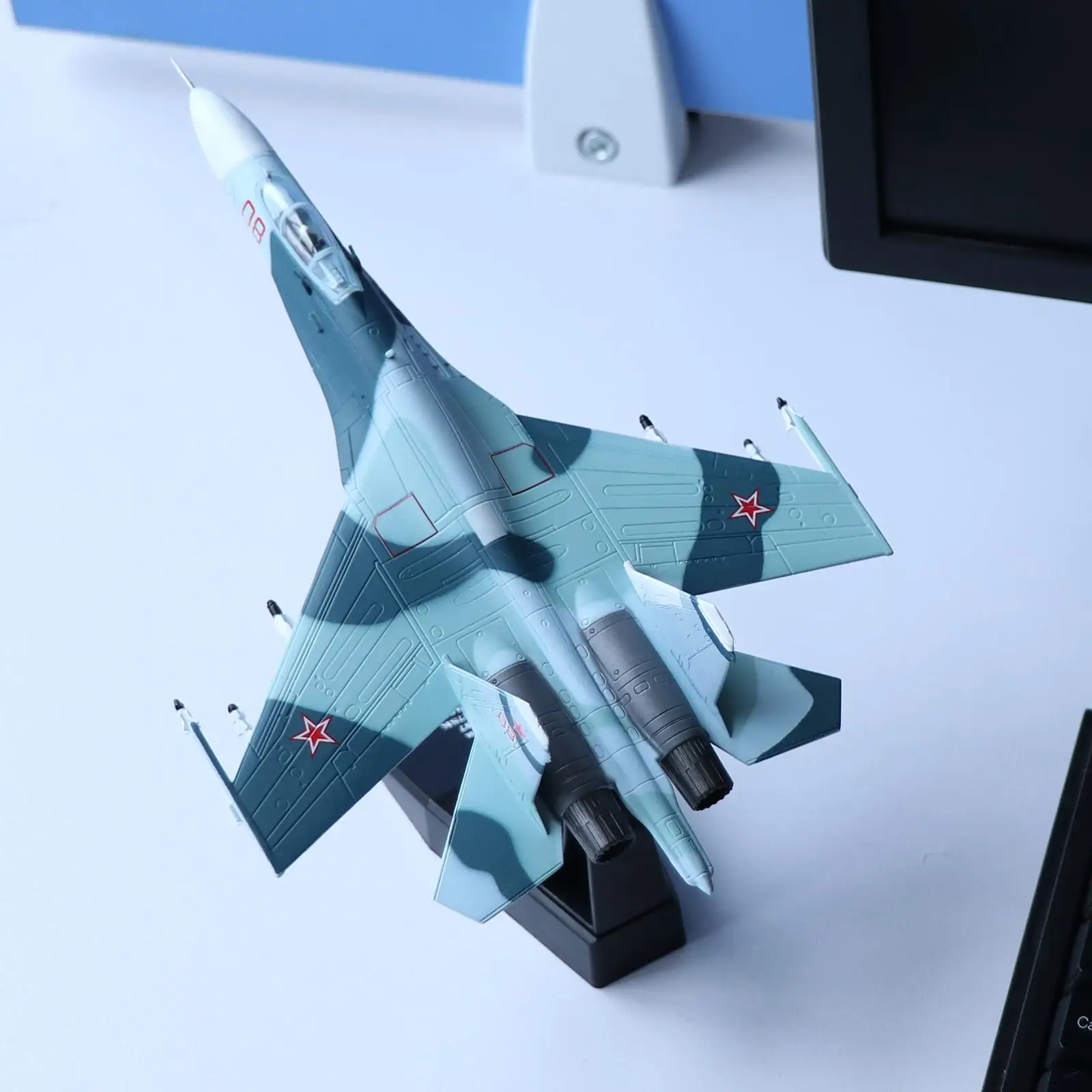 Immerse yourself in aviation excellence with this highly detailed 1:100 scale diecast model of the Soviet Union’s Sukhoi Su-27 fighter jet. Crafted from metal alloy, this accurately scaled replica measures 22 cm in length, 14.7 cm in width, and 5.9 cm in height, showcasing intricate features such as a light blue-gray camouflage pattern, sharp nose, transparent cockpit, swept-back wings, twin stabilizers with red star insignias, and realistic surface textures. It includes a display stand for optimal presentation, making it ideal for collectors and enthusiasts to showcase in living rooms, offices, or retro-themed spaces. Perfect for adding a touch of military aviation history to your collection.