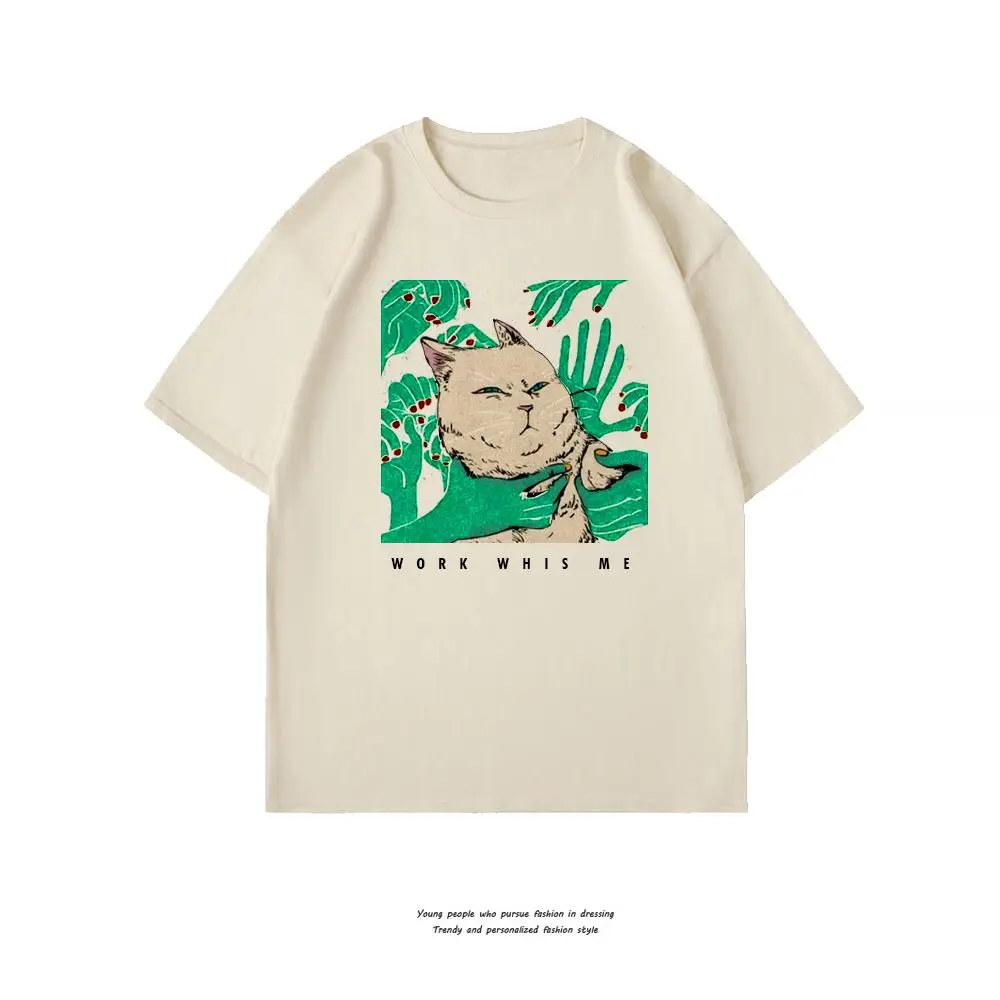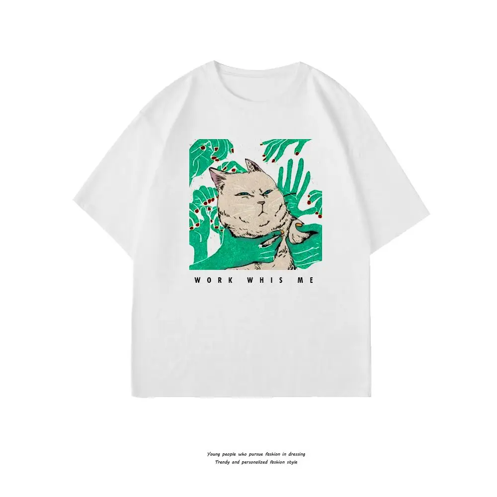 Step into the stylish comfort of this summer new cat graphic T-shirt, perfect for expressing your fun and quirky side. Made from breathable cotton, it offers a lightweight and soft fabric that keeps you cool across all four seasons. The bold, contemporary design features a playful illustration of a white or light-colored cat with a serious expression, framed by exaggerated green hands with orange nails, creating a surreal, eye-catching visual. Its casual short-sleeved style and versatile fit make it ideal for everyday wear, travel, or casual outings. Easy to care for with machine wash, this T-shirt combines comfort, durability, and artistic flair, making it a staple piece for your wardrobe, suitable for both men and women.