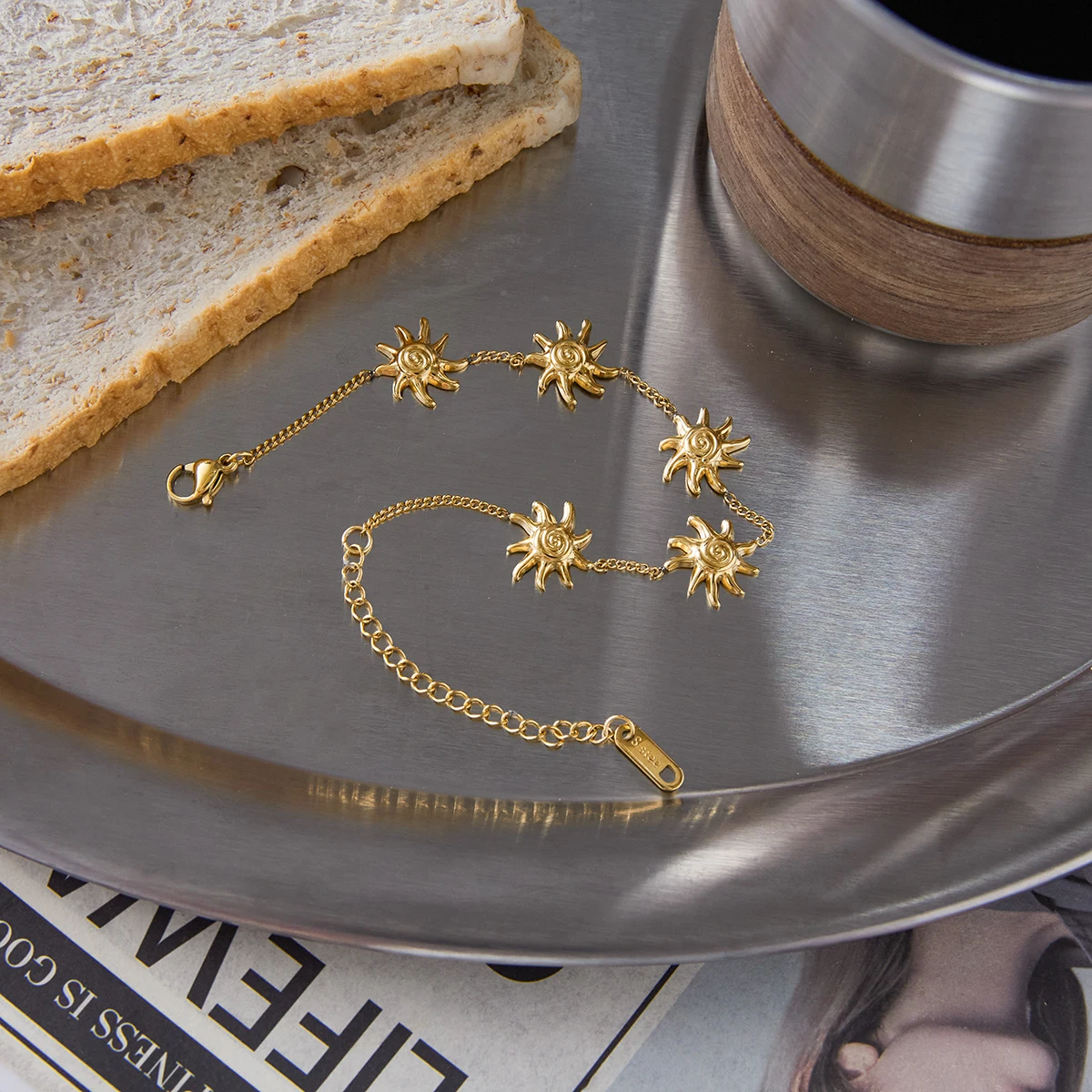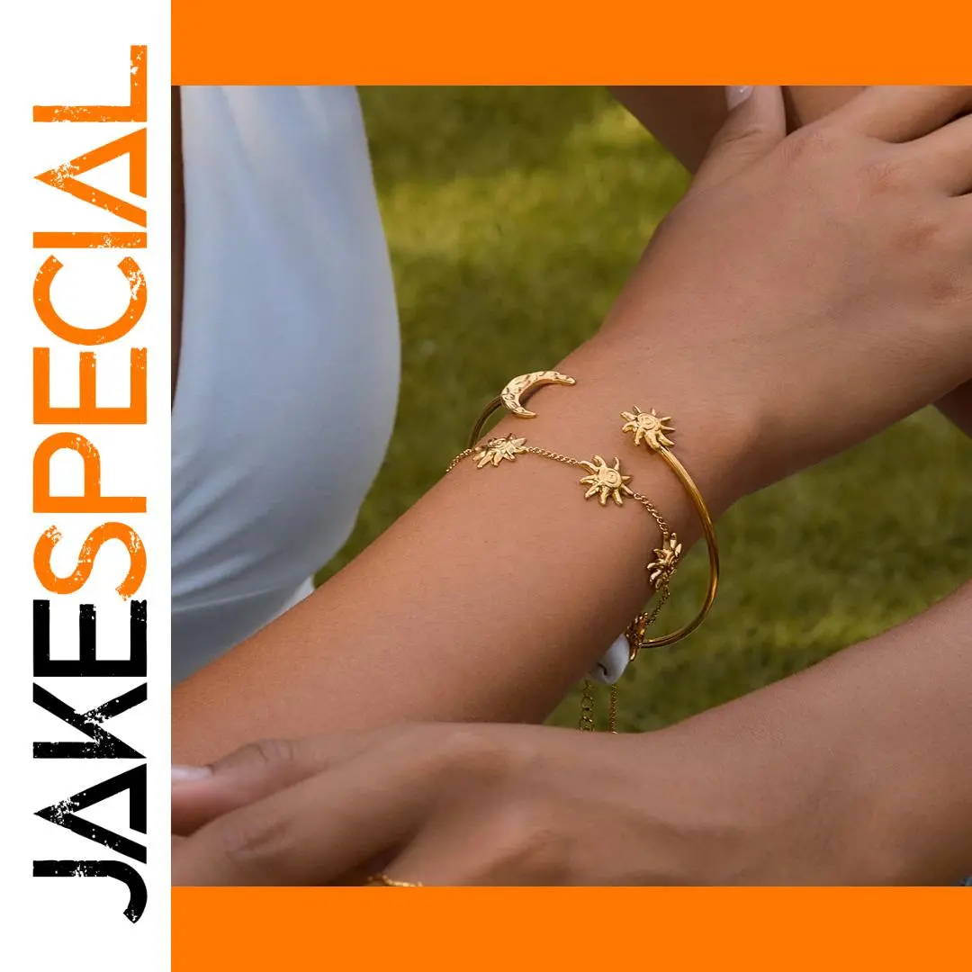 This Elegant Gold-Color Stainless Steel Sun & Moon Bracelet