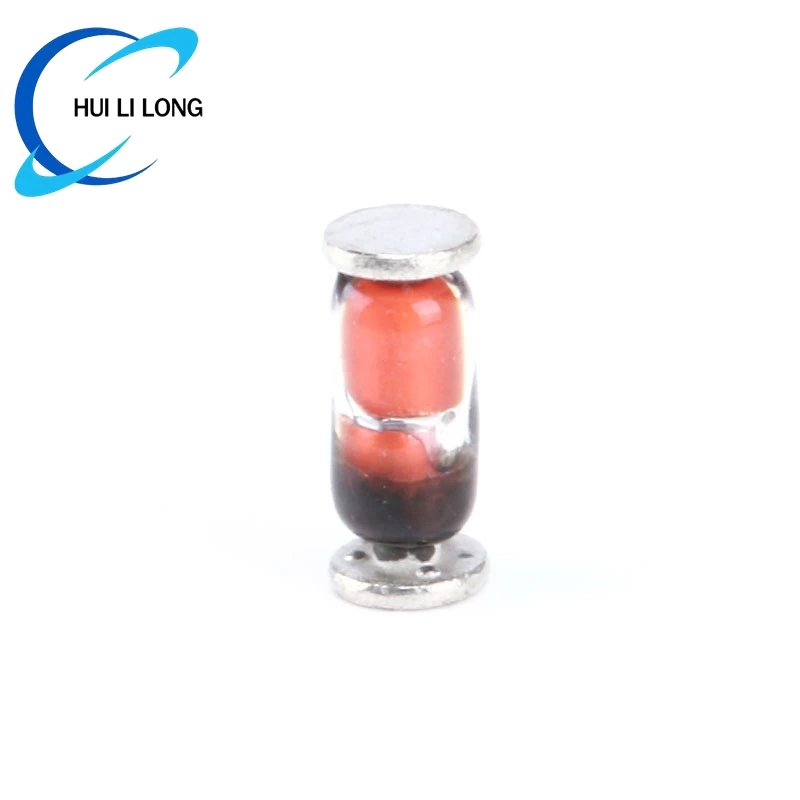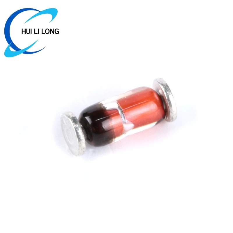 Experience reliable switching with this organized strip of 1N4148 LL4148 diodes, presented in a sleek 1206 package. Perfect for automated assembly, each diode features a transparent glass enclosure revealing a reddish semiconductor core with metallic ends, showcasing its precise craftsmanship. Its minimalistic plastic carrier ensures easy handling while maintaining an industrial aesthetic. Designed for seamless integration into various electronic projects, this product boosts your circuit's performance and durability. Whether you’re refining sensor systems or switching operations, these diodes provide a dependable solution. Imagine completing your project effortlessly with consistent, high-quality components ready for precise placement. Elevate your electronics with this essential, visually appealing reel of surface-mount diodes that meets your technical and aesthetic standards for excellence.