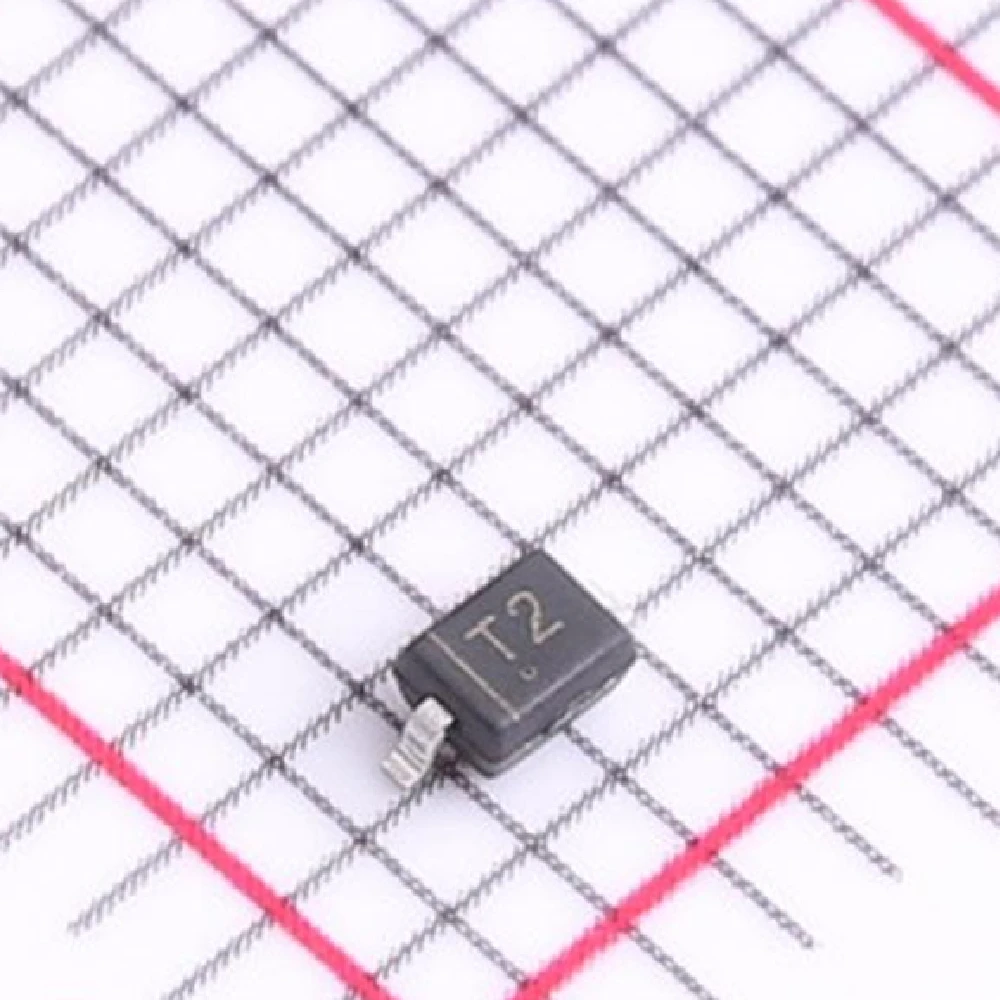 Experience the reliability and efficiency of this surface-mount BAV20 diode, ideal for compact electronic designs. Its sleek black rectangular body with a matte finish showcases high-quality craftsmanship. Marked “T2” in light-colored text, it offers easy identification. The component features delicate metal contacts on opposite sides, ensuring a secure fit on circuit boards. This diode's small size enhances high-density circuit design, providing excellent performance without sacrificing space. Perfect for professionals seeking durability and precision, this product elevates your projects with robust, surface-mount technology. Visualize seamless integration into your designs, boosting efficiency and reliability within complex electronic systems.