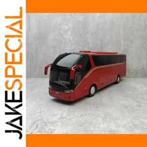 This detailed diecast model of the KLQ6127BAE51 highway bus is crafted in a vibrant red finish at a 1:42 scale, approximately 1:43, offering an authentic miniature representation of the real vehicle. Made from alloy, it features a sleek, modern design with smooth rounded contours, large tinted windows, and a glossy black curved windshield for a realistic appearance. The model boasts fine details such as side mirrors with a slight upward angle, circular headlights with yellow turn signals, and a subtle flowing gold line along the body’s side. Suitable for collectors aged 14 and over, this high-quality, finished metal toy perfectly captures the essence of the highway bus with a polished, durable construction.