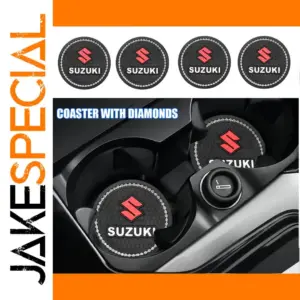 Experience the perfect blend of functionality and elegance with this set of Suzuki car cup coasters. Crafted from durable, environmentally friendly rubber, each coaster measures 2.7″ (7 cm) in diameter, ensuring a snug fit in most car cup holders. The textured honeycomb surface provides a secure grip, effectively preventing drinks from sliding or tipping over. Adorned with a delicate line of sparkling rhinestones, these coasters add a touch of luxury to your vehicle’s interior. The bold red Suzuki logo against a black textured background highlights your passion for the brand while enhancing your car’s aesthetic appeal. Easy to clean and designed to protect your car’s original cup holder from dust and water damage, they combine style with practicality.