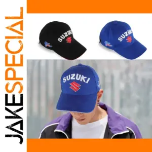 - Available in bold black and vivid blue colors, each featuring striking embroidery of the Suzuki logo in white and a red emblem for increased visibility.