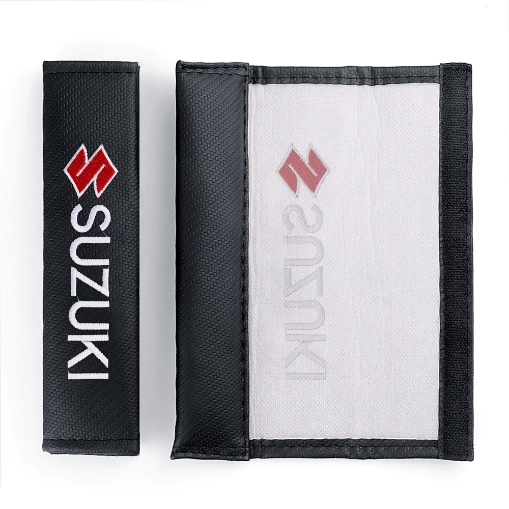 Experience driving like never before with this sleek, high-quality shoulder pad designed specifically for Suzuki vehicles. Crafted from premium carbon fiber fabric, this pad combines innovative durability with a refined aesthetic. Its textured patterned surface provides a modern, sporty look while ensuring excellent airflow for comfort during long drives. Featuring expert embroidery of the Suzuki logo in contrasting white and a vibrant red emblem, it signifies style and high craftsmanship. Easily attachable via a sturdy velcro strip, this pad offers quick removal or fitting. Not only does it elevate your vehicle's interior style, but it also reduces shoulder fatigue and muscle strain caused by extended use of seat belts. Upgrade your driving experience today with this premium accessory.