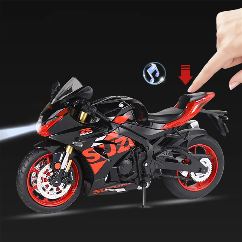 The 1:12 scale diecast model of the Suzuki GSX-R1000R sports motorcycle captures the essence of high-performance engineering with its stunning glossy black and vibrant red finish. Imagine showcasing this beautifully detailed model on your collection shelf, its aerodynamic lines and sharp contours evoking the thrill of speed and adventure. The meticulous craftsmanship includes vibrant red rear fairings and intricate wheel designs with red rims. Perfect not only for avid collectors but also as a thoughtful gift for motorcycle enthusiasts. Embrace the artistry of this iconic motorcycle and let its presence inspire your passion for two-wheeled speed.