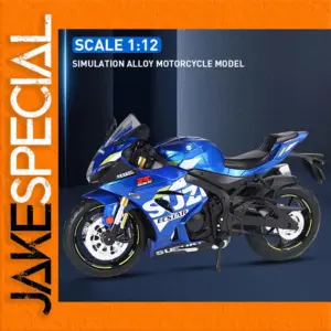 Introducing the stunning 1/12 scale Suzuki GSX1000R motorcycle model, crafted from durable die-cast metal for a realistic, robust finish. The vibrant blue color with a glossy sheen highlights its sleek, aerodynamic design, featuring iconic Suzuki branding in bold white on the sides. Detailed graphics, including the “ECSTAR” motif, enhance its sporty appeal. The model includes intricately designed wheels with silver rims accented by lime green, a detailed headlight with a tinted windshield, and a low, racing-style seat for an authentic experience. This eye-catching ornament is perfect for collectors and enthusiasts alike, showcasing the essence of this iconic motorcycle.