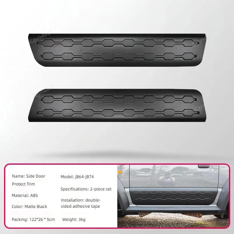 Enhance and protect your 2019-2024 Suzuki Jimny (JB64 and JB74) with this durable side door anti-scratch guard plate. Crafted from ABS material, it measures 126 cm in length, 33 cm in width, and 9 cm in height, weighing 3.2 kg. Available in two stylish options—A Style and B Style—this styling moulding effortlessly combines rugged protection with a sleek appearance. Its textured design adds visual depth while safeguarding against scratches and minor impacts, making your Jimny look more refined and tough. Easy to install, this accessory is perfect for drivers who want to elevate their vehicle’s exterior while ensuring lasting durability and a personalized touch.