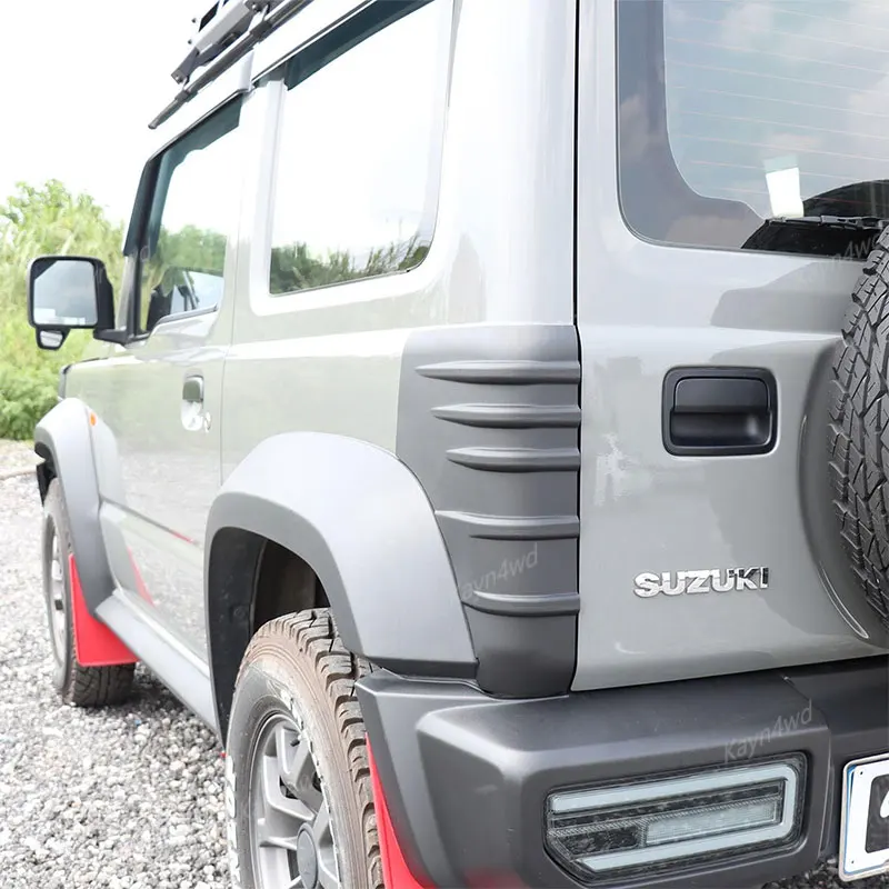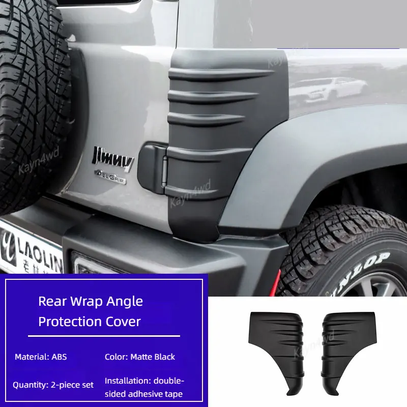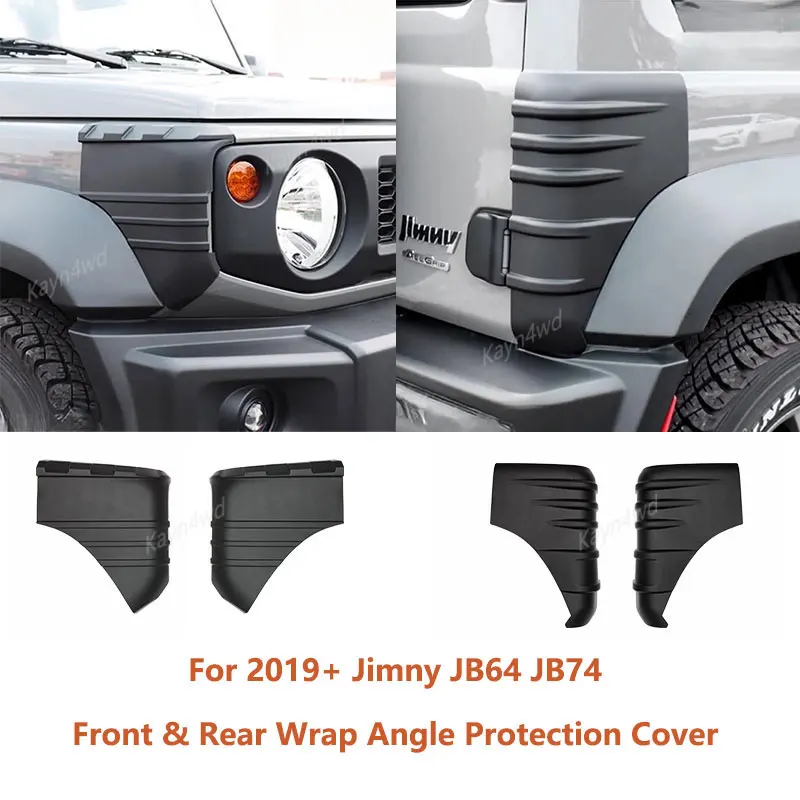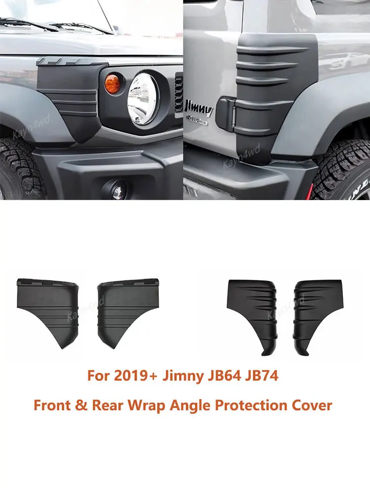Enhance your Suzuki Jimny’s look and resilience today with this specially designed set of black ABS protection covers. Imagine already having them mounted, confidently off-roading over challenging terrains while knowing your vehicle's corners are fully safeguarded. The sleek, angular design blends seamlessly with your Jimny’s rugged style, giving it an enhanced, formidable appearance. Easy to install, durable, and crafted with precision, these covers are the ideal upgrade to ensure your vehicle is prepared for any adventure. Don't wait—your Jimny deserves this tough, reliable protection now!