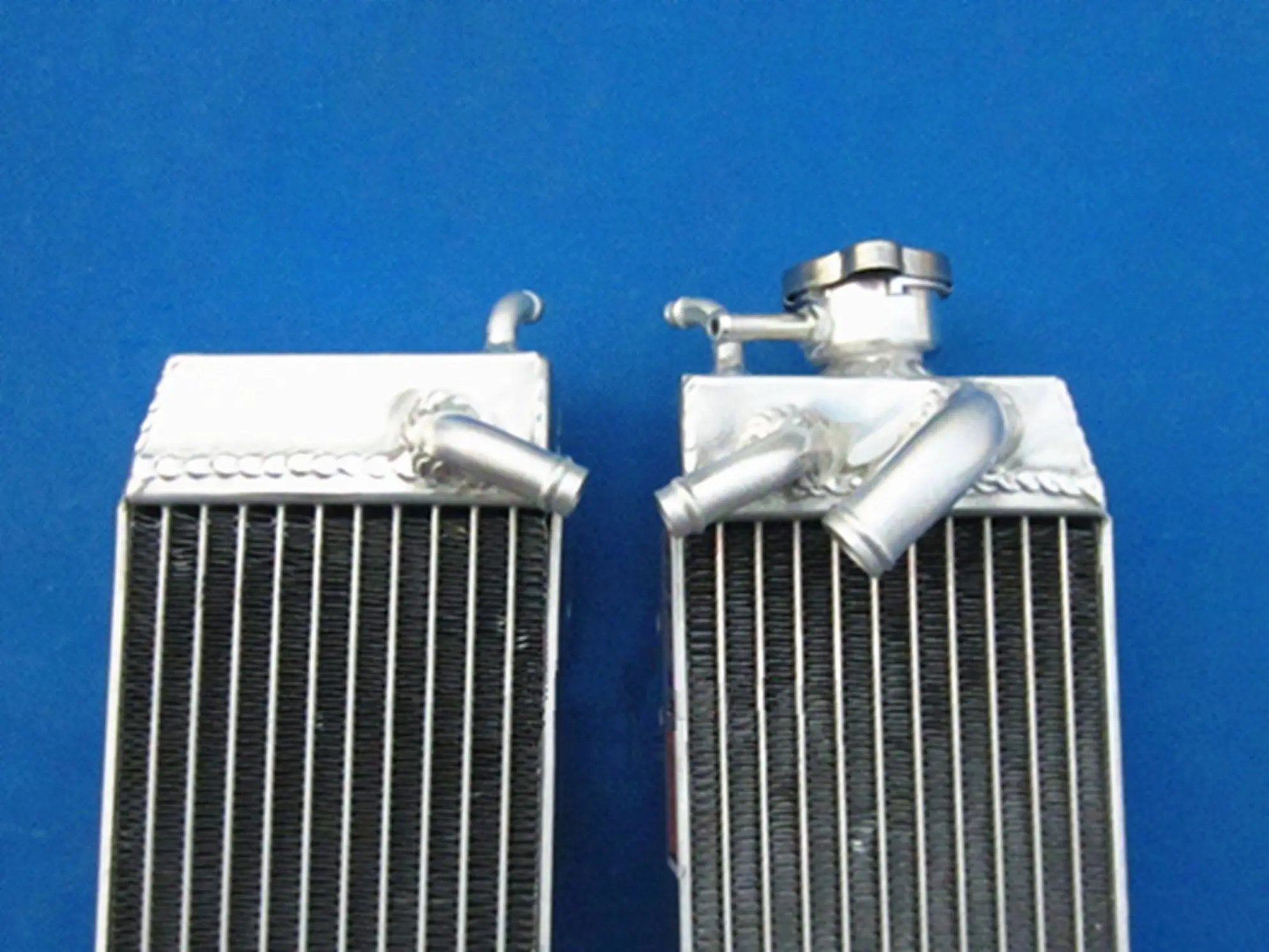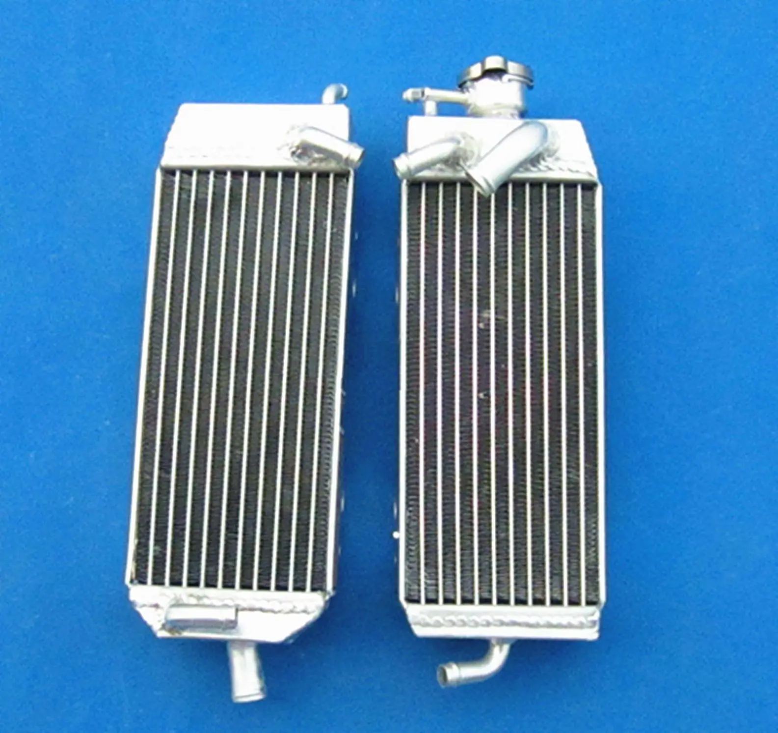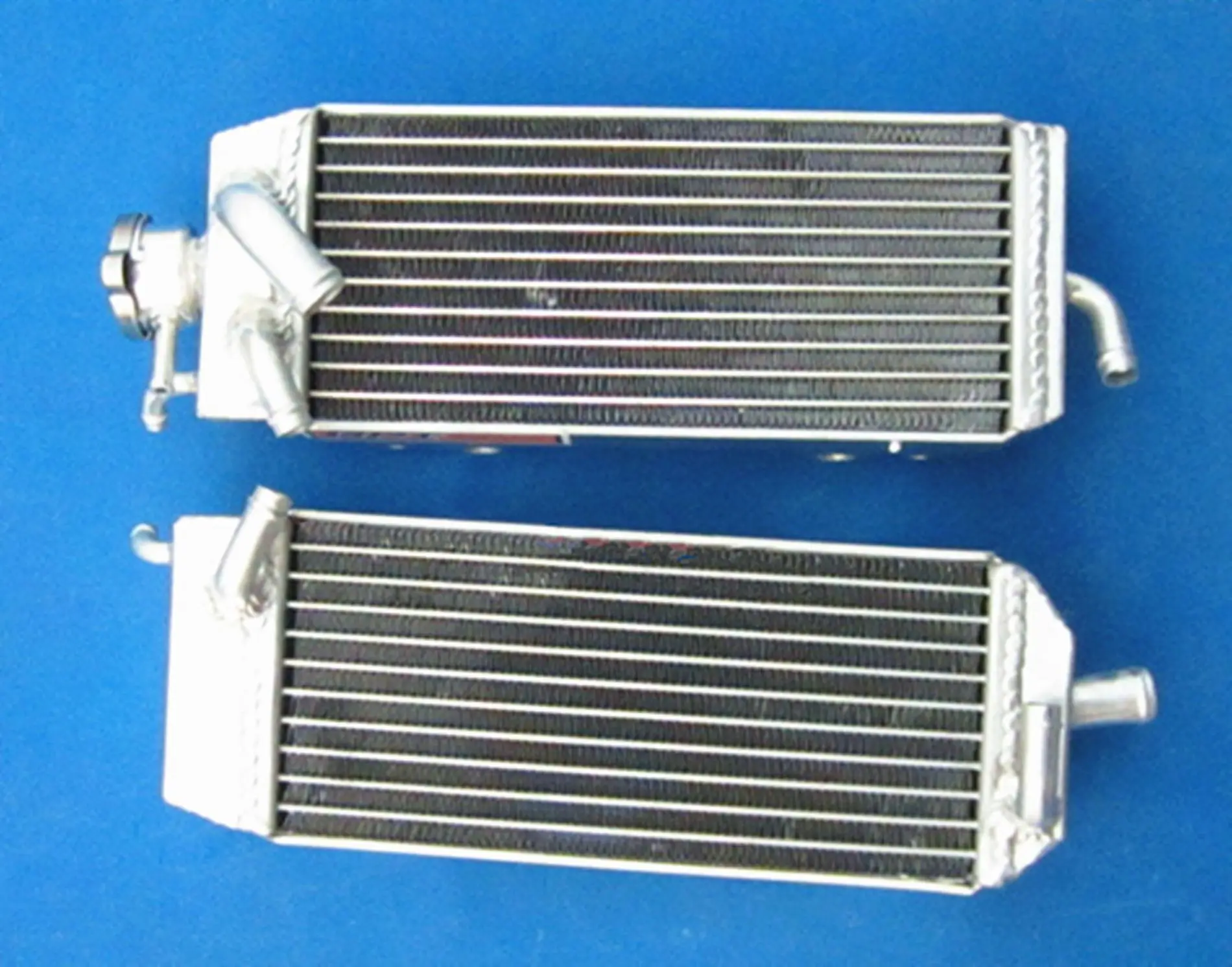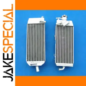 Upgrade your Suzuki RM125 series (1998-2000, including RM125X, RM125W, RM125Y) with this pair of high-performance aluminum radiators crafted from T-6061 aluminum. Featuring welded cores via vacuum brazing and TIG-welded tanks for exceptional durability, these radiators offer about 40% increased cooling capacity over standard units. The sleek, lightweight design enhances cooling efficiency and is designed for easy installation with minimal modifications. Brand new and backed by a 1-year warranty against manufacturing defects, these heavy-duty radiators deliver reliable performance for demanding riding conditions. Perfect for enthusiasts seeking durability, efficiency, and a professional-grade upgrade.