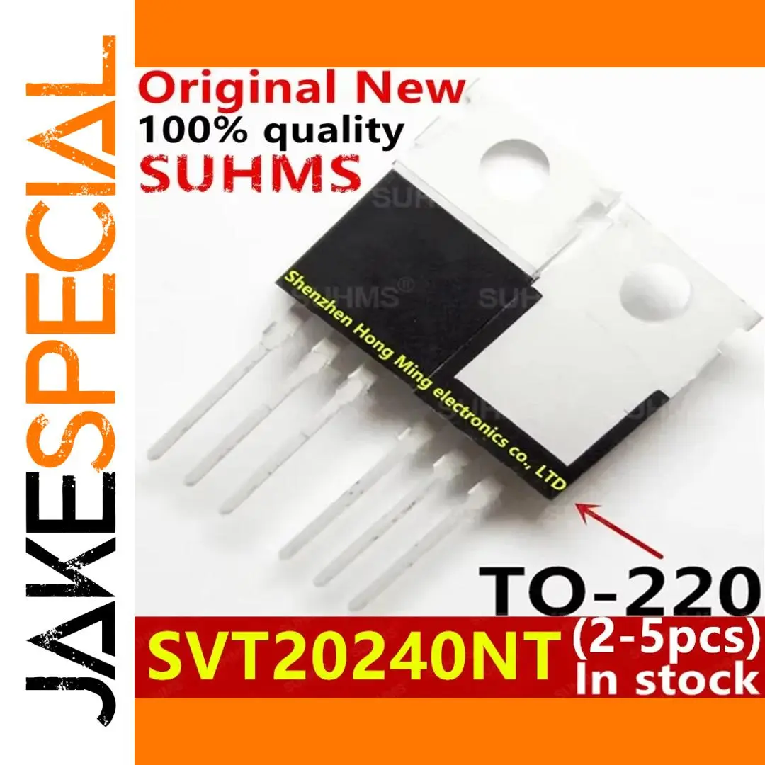 - This set of 2 or 5 SVT20240NT IC units features a durable black TO-220 package with a sleek, industrial aesthetic, ideal for high-performance electronic applications requiring robust component design.