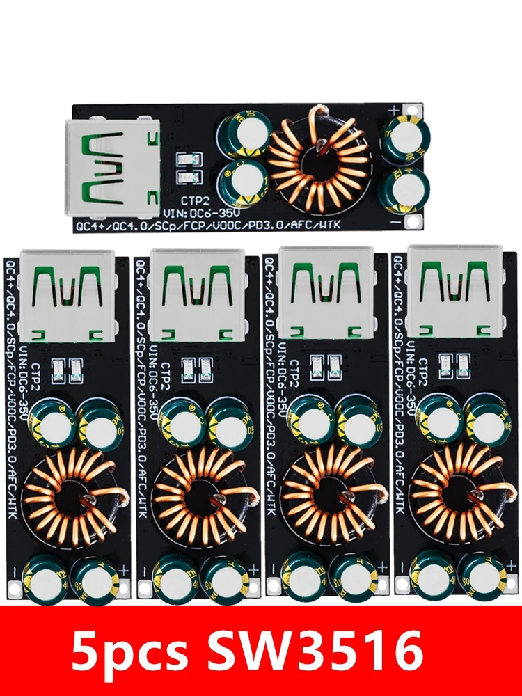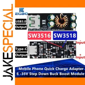 - Supports an input voltage range from 6V to 35V with models SW3516 and SW3518, suitable for various electronic projects requiring step-down or step-up power regulation.