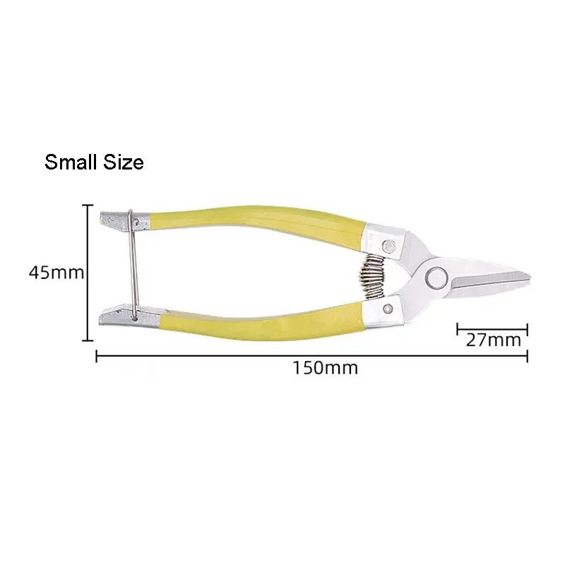 Imagine effortlessly trimming your garden with the Swayboo Household Stainless Steel Garden Pruning Shears, expertly designed for both professional gardeners and enthusiasts. These shears feature a clean, polished stainless steel blade for exceptional cutting precision, available in three blade lengths: 27mm, 32mm, and 50mm. The vibrant yellow dipped plastic handles provide a secure, non-slip grip for comfort during extended use. With dimensions of 150mm, 170mm, or 185mm total length and a weight of just 56g or 84g, these lightweight shears make pruning a breeze. A sturdy coil spring mechanism enhances your cutting efficiency while the integrated metal clip ensures easy storage. Elevate your gardening experience with these indispensable tools.