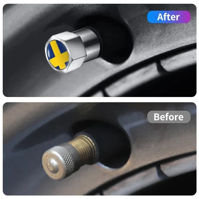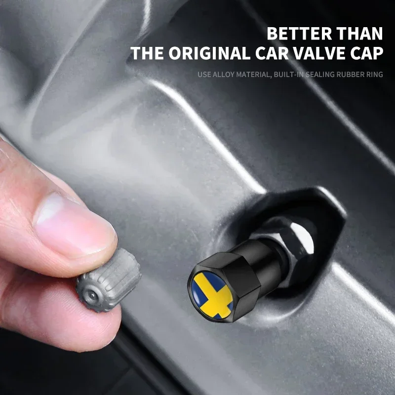 This Swedish Valve Cap Set—Upgrade Your Car’s Style Today