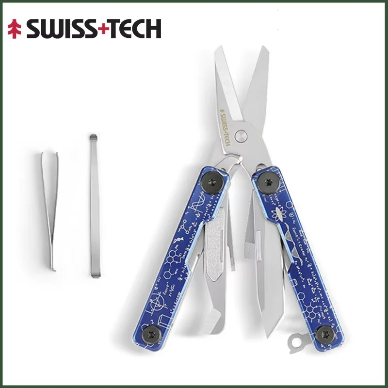 Experience versatility and reliability with this compact SWISS+TECH 12-in-1 multifunctional multitool, weighing only 6.3 ounces and measuring 5.2″ when open. Made from durable, corrosion-resistant stainless steel with a polished finish, it features 12 essential tools including spring-action scissors, a knife, tweezers, and a file. Its sleek design allows easy access to the scissors without full unfolding and includes a key ring attachment for convenience. The tool’s vibrant handle, available in blue, red, or silvery, combines modern aesthetics with practical functionality, making it ideal for outdoor adventures, camping, survival tasks, or household use.