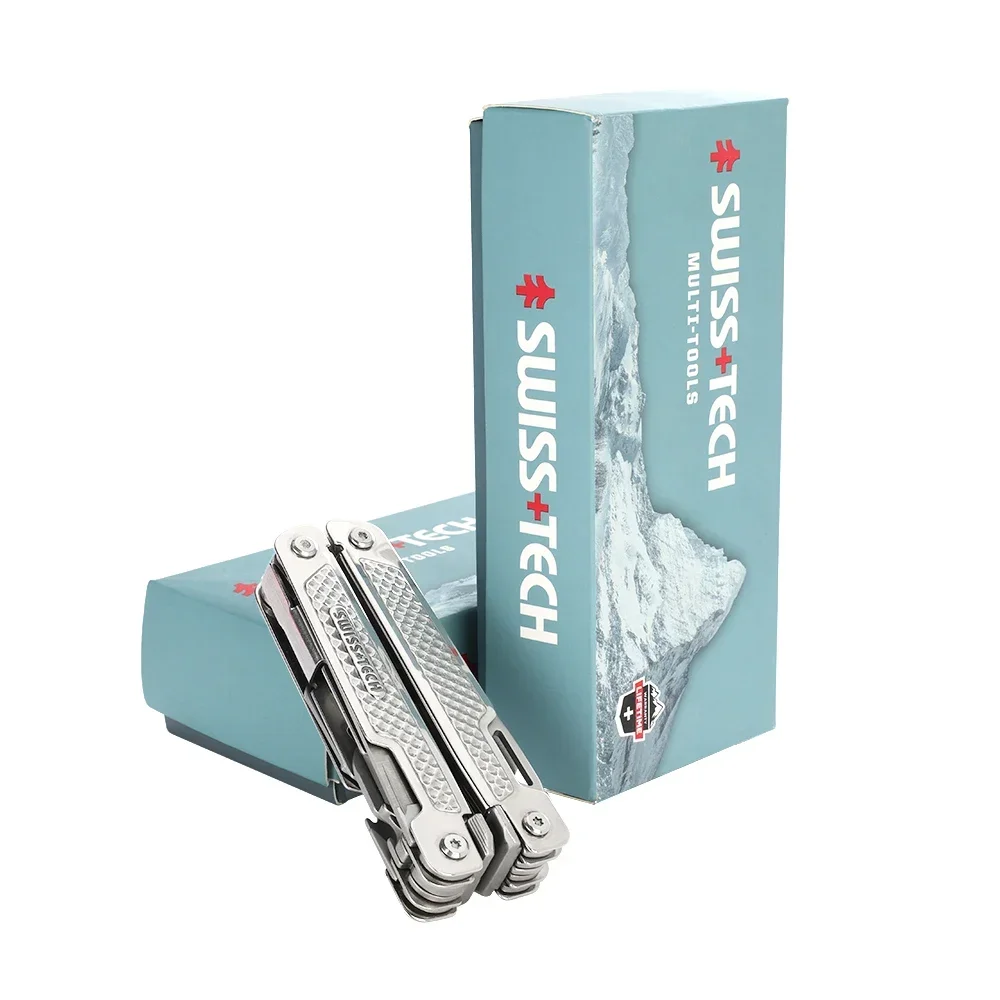 Envision yourself confidently tackling various tasks, knowing you have this multi-tool on hand. Its sleek aesthetic combined with robust functionality makes it a perfect addition to your outdoor gear, workshop, or emergency kit. With its high-quality materials and versatile tools, you'll always be prepared, whether at home, camping, or on the go. Make this reliable Swiss Tech multi-tool yours today and experience the convenience of having multiple tools in one compact, stylish package designed for durability and safety.