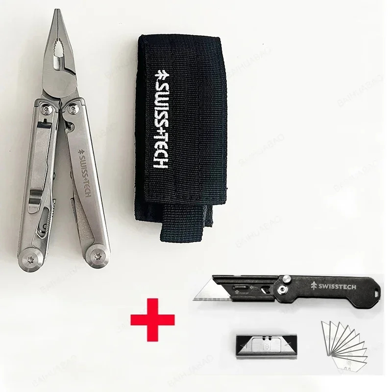 Enhance your toolkit with this versatile multitool, perfect for outdoor excursions, DIY repairs, or everyday needs. Its robust construction ensures longevity, while its compact design makes it easy to carry. Imagine confidently handling repairs or outdoor tasks, knowing you have a reliable, all-in-one tool at your fingertips. Designed for durability and practicality, this multitool is a valuable addition to your collection. Don't wait—equip yourself now and experience the convenience and reliability that this SwissTech multitool offers, making every task easier and more efficient.