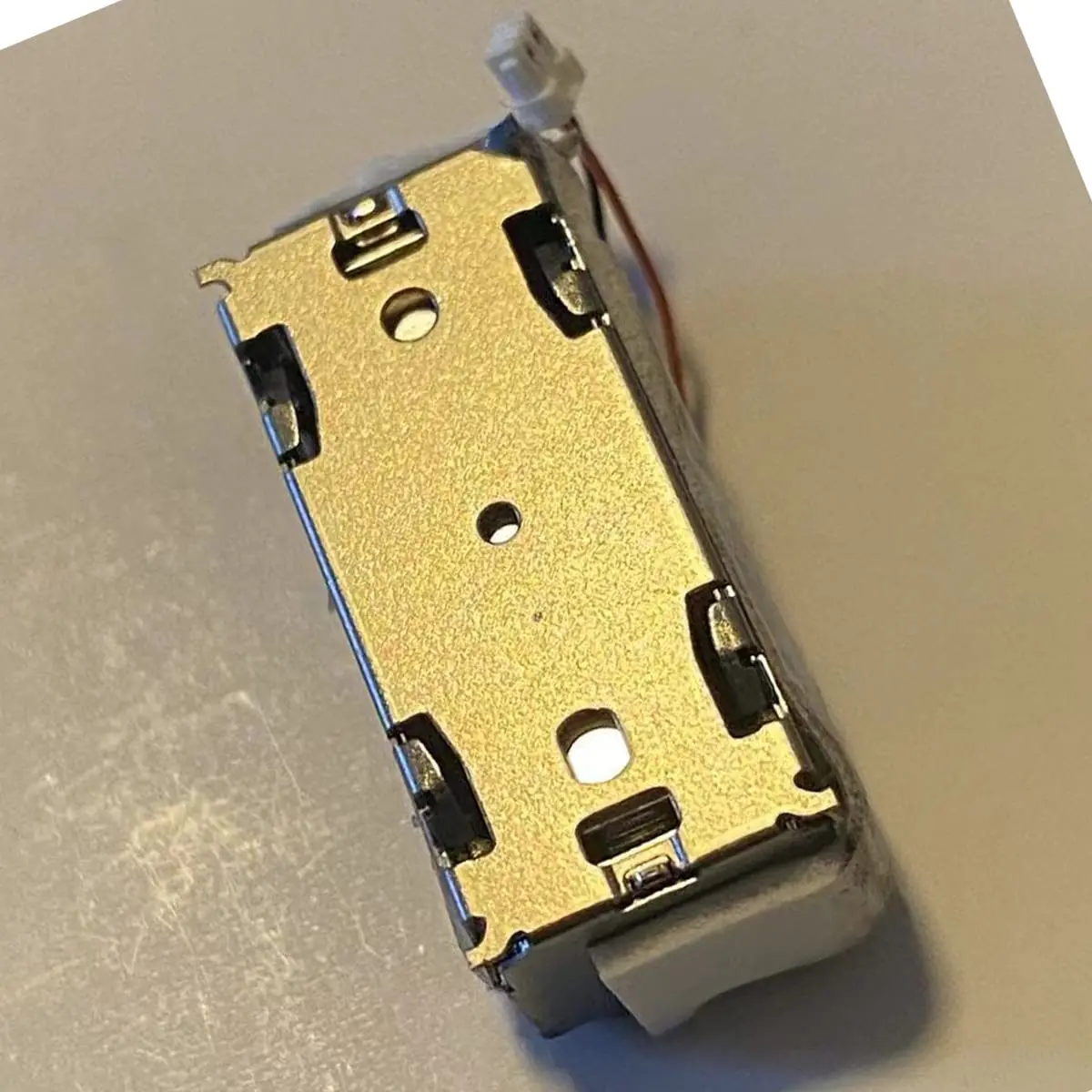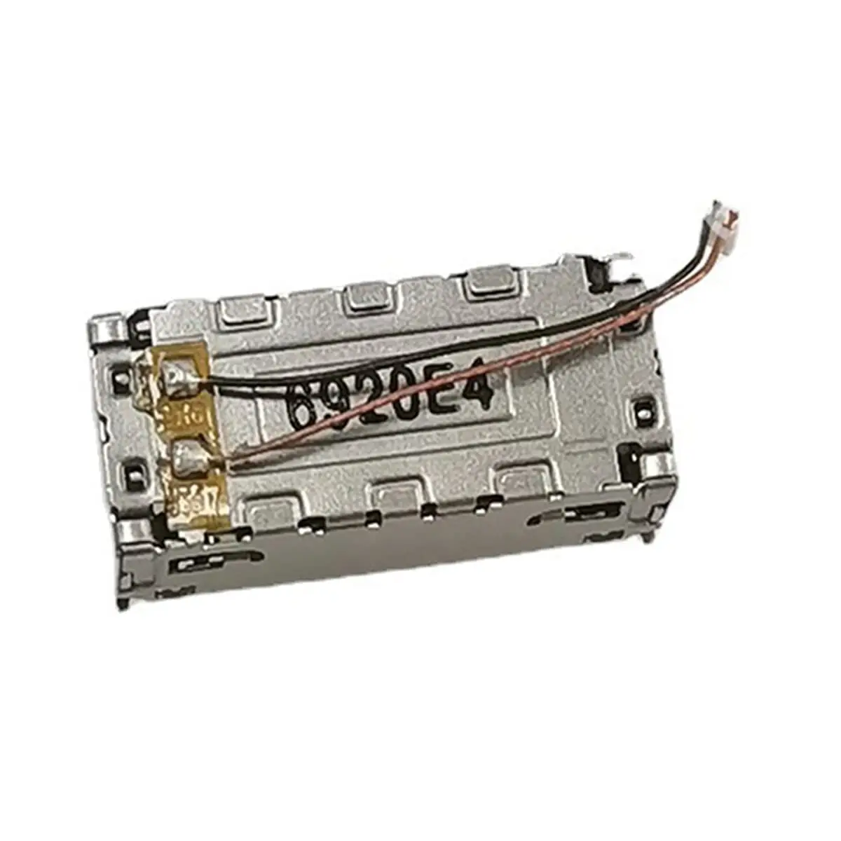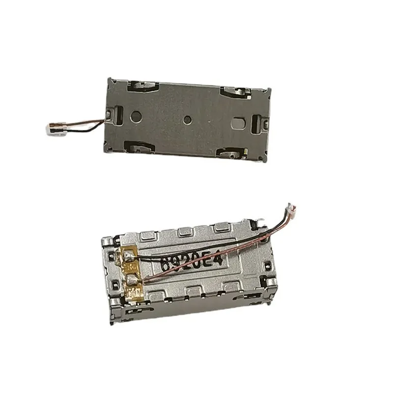 Enhance your gaming experience with this pair of OEM linear vibration motors designed specifically for Nintendo Switch Joy-Con controllers. Featuring a sleek rectangular metallic silver casing with textured surfaces and printed markings, these high-quality motors come with two insulated wires—one black and one orange—terminated with small white connectors for effortless installation. Equipped with grey circular mounting points for secure stabilization, they are compatible with all Switch Joy-Con models requiring similar vibration components. Built for durability and precise performance, these motors deliver authentic tactile feedback, ensuring every rumble and buzz during gameplay feels just right.